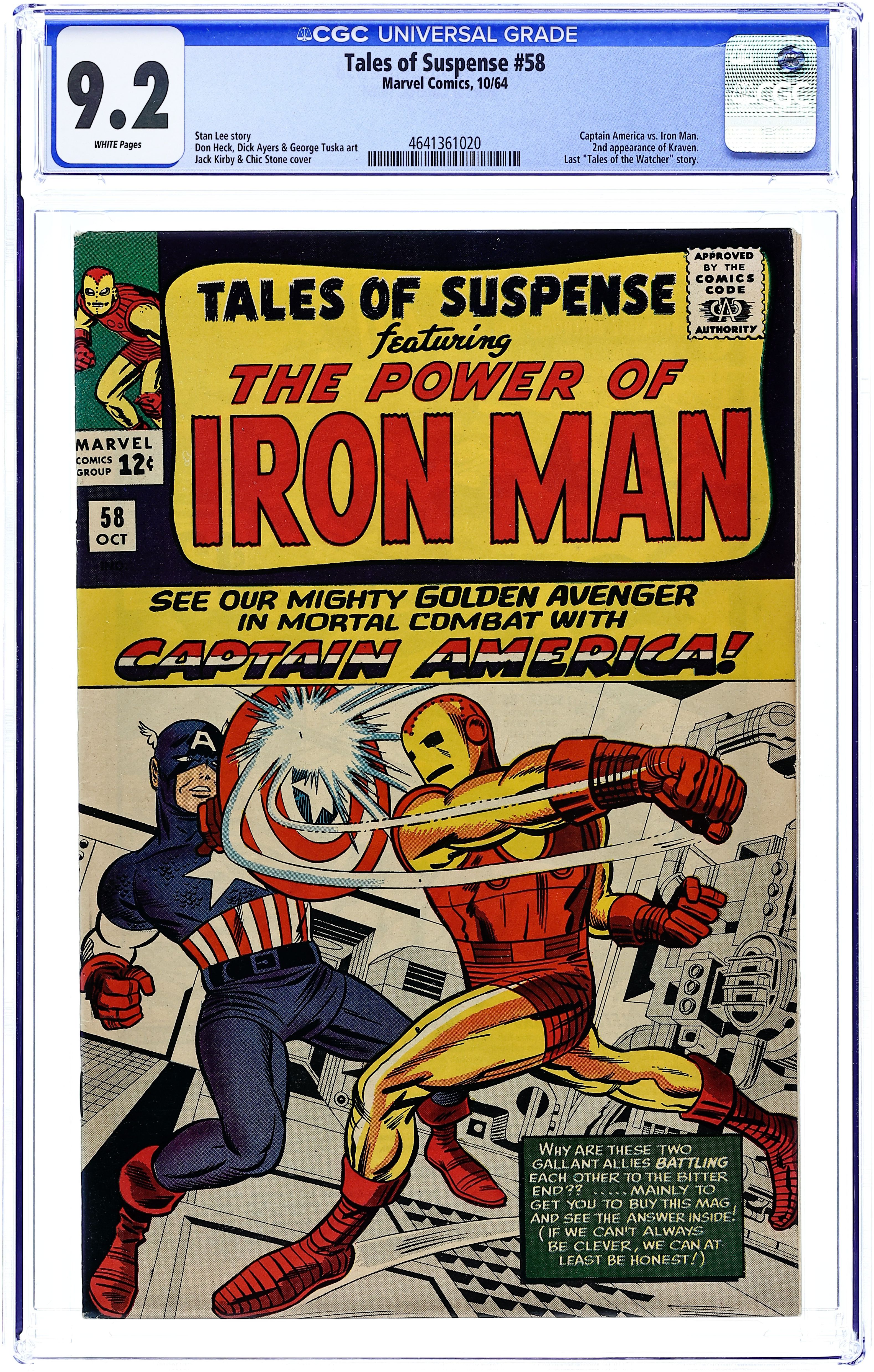 Tags: Marvel Legacy Numbering: Captain America (part 58), Marvel Legacy Numbering: Tales of Suspense (part 58), Captain America, Iron ManTales of Suspense (1959) 58 CGC 9.2