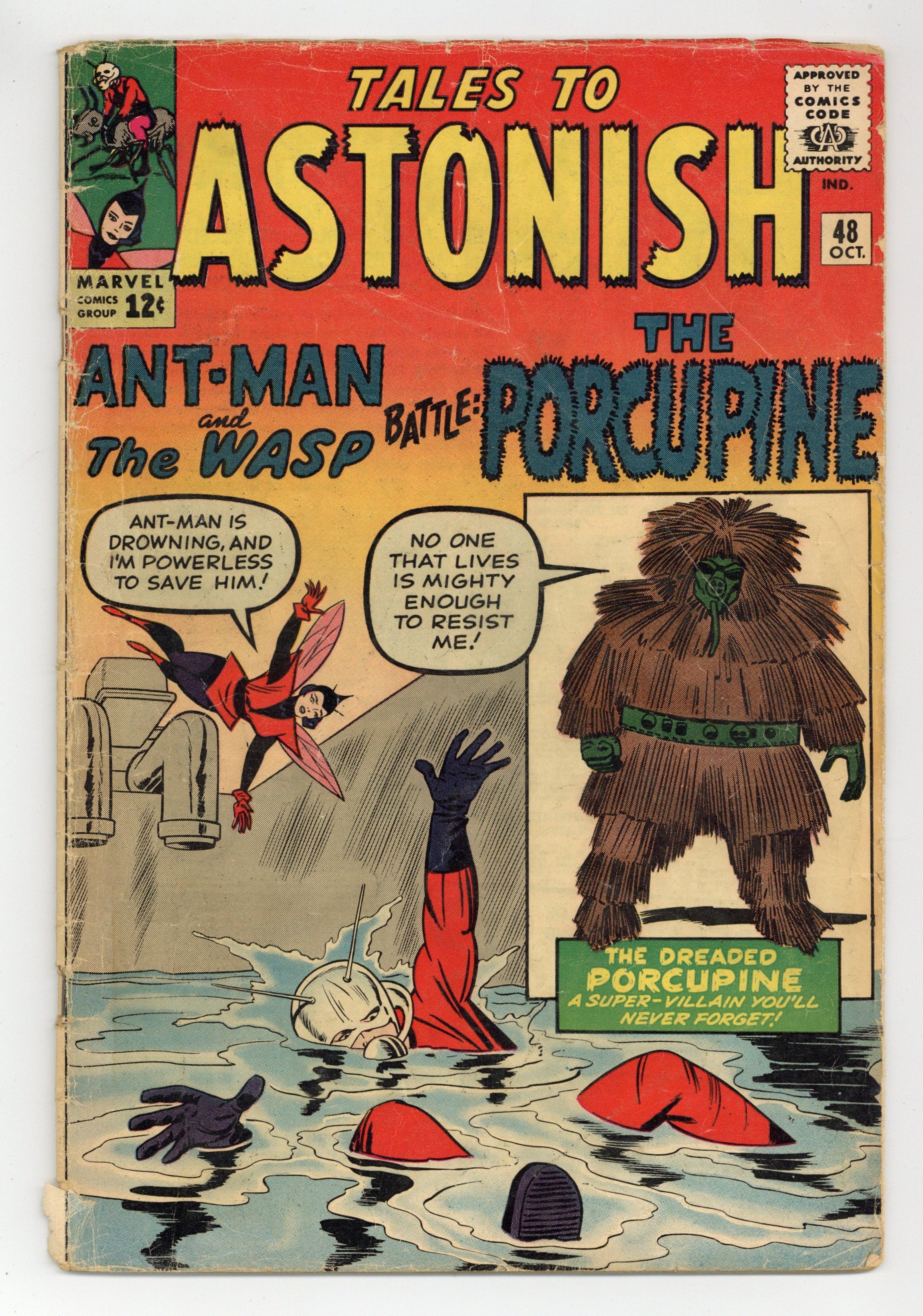 Cover by Jack Kirby and Sol Brodsky. Ant-Man and the Wasp Defy the Porcupine!, script by Stan Lee and Ernie Hart [as H. E. Huntley], art by Don Heck; The Porcupine decides to rob a burglar-proof bank designed by Henry Pym. The Inventor text story. Grayson's Gorilla!, script by Stan Lee and Larry Lieber, art by Larry Lieber and Matt Fox; A scientist tries to give himself the strength of a gorilla for his own ends. The Little Green Man!, script by Stan Lee, art by Steve Ditko; An unscrupulous pilot tricks an alien into refitting his plane, but throws the creature out instead of rewarding it. 36 pgs., full color. $0.12. Cover price $0.12.
