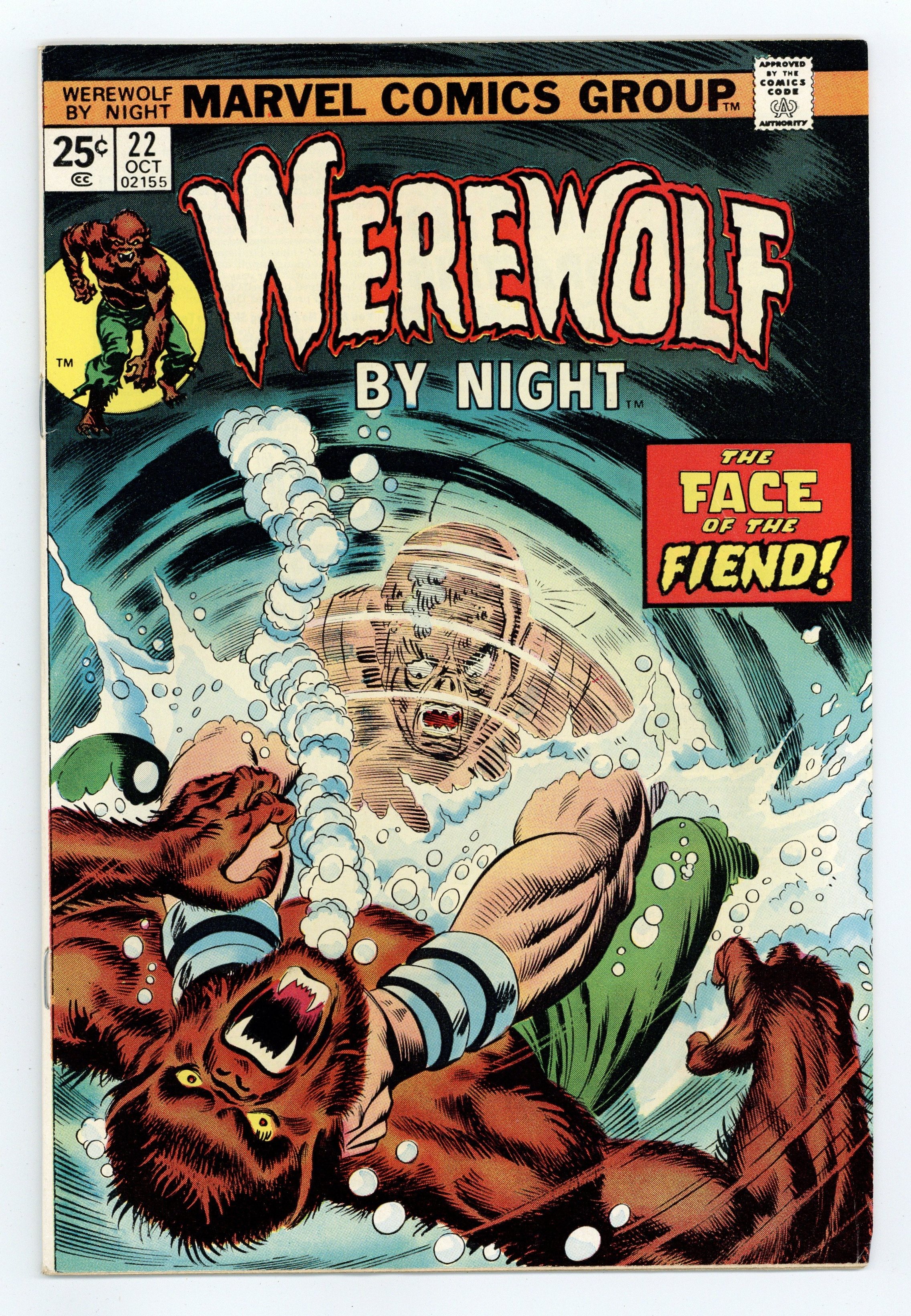 Marvel Value Stamp. Cover pencils by Gil Kane and John Romita (alterations), inks by Dan Adkins and John Romita (alterations). Face of the Fiend, script by Doug Moench, pencils by Don Perlin, inks by Vince Colletta; Jack Russell is caged in a storage room in Buck Cowan's house, but he escapes as the Werewolf. 36 pgs. $0.25. Cover price $0.25.