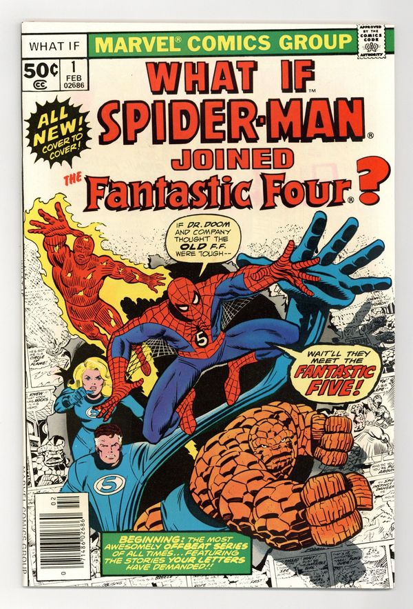 Starts Feb 2 Cover by Ron Wilson and Joe Sinnott. What if Spider-Man Joined the Fantastic Four? Script by Roy Thomas, pencils by Jim Craig, inks by Pablo Marcos; Spider-Man becomes a member of the FF; Cameos by Killraven, the Squadron Supreme, and Deathlok. Hostess Fruit Pie ad with the Hulk, pencils by Dave Cockrum. Ad for Richochet Racers with Spider-Man and Captain America. Roy Thomas discusses how the title came about. 52 pgs. Cover price $0.50.