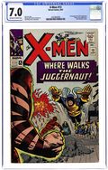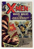Tags: X-Men$125.00Cover pencils by Jack Kirby, inks by Joe Sinnott. Where Walks the Juggernaut!, script by Stan Lee, pencils by Jack Kirby (layouts) and Werner Roth [as Jay Gavin], inks by Joe Sinnott; Juggernaut has invaded the mansion and the X-Men struggle to take down Xavier's unstoppable half-brother; Human Torch lends a hand and Professor X is able to bring his brother down. 36 pgs. $0.12. Cover price $0.12.