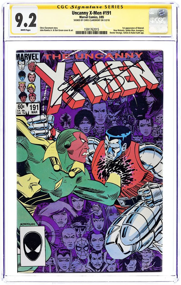 Direct Edition. "Raiders of the Lost Temple!" Part 2 of 2. Guest-starring the Avengers, the New Mutants, Doctor Strange, and Spider-Man. Story by Chris Claremont. Art by John Romita, Jr. and Dan Green. The X-Men, Avengers, and New Mutants must unite and defeat some of their own to stop the sinister warlock Kulan Gath before his dark magic encompasses the Earth, turning everything into a fantasy world of sword and sorcery. The key to victory lies with the man known as the Spider! Plus, a mysterious new threat arrives from the future. NOTE: 1st appearance of Nimrod. 36 pgs. Cover price $0.60.