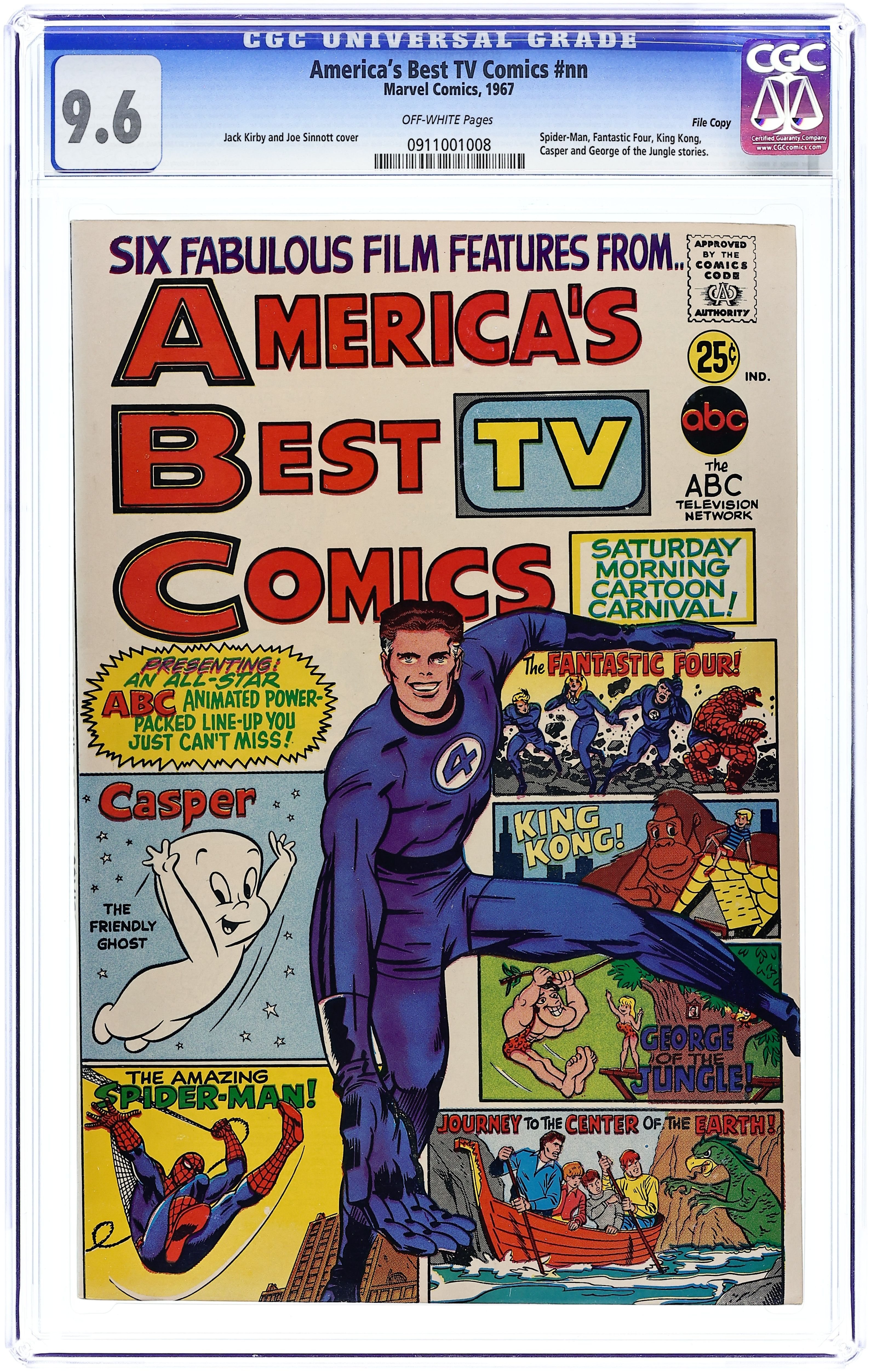 Cover pencils by Jack Kirby. Reprints. Saturday Spectacular on ABC ad. "The Flying Horse"; A magician, Ali BooBoo, feeds Nightmare a magic apple and takes him away from the Enchanted Forest. "Prisoners of the Pharaoh," script by Stan Lee, pencils by Jack Kirby, inks by Dick Ayers; The Fantastic Four return to Ancient Egypt to try to find a cure for Alicia's blindness and are met by Rama-Tut, a time traveler from the year 3000. "The Birth of a Super-Hero," script by Stan Lee, art by John Romita; John Jameson was exposed to some strange space spores on a space mission; He returns to Earth where he gains super strength; Spider-Man is mistakenly accused of robbing a bank so Jameson decides to try to capture him with his new super powers. "The People of the Styx," art by Paul Reinman; Journey To the Center of the Earth story. "Kong Joins the Circus," inks by Frank Giacoia. "Shep's Burial Ground" starring George of the Jungle, Ursula, and Shep. The Flying Nun comic book ad. 68 pgs., full color. Cover price $0.25.