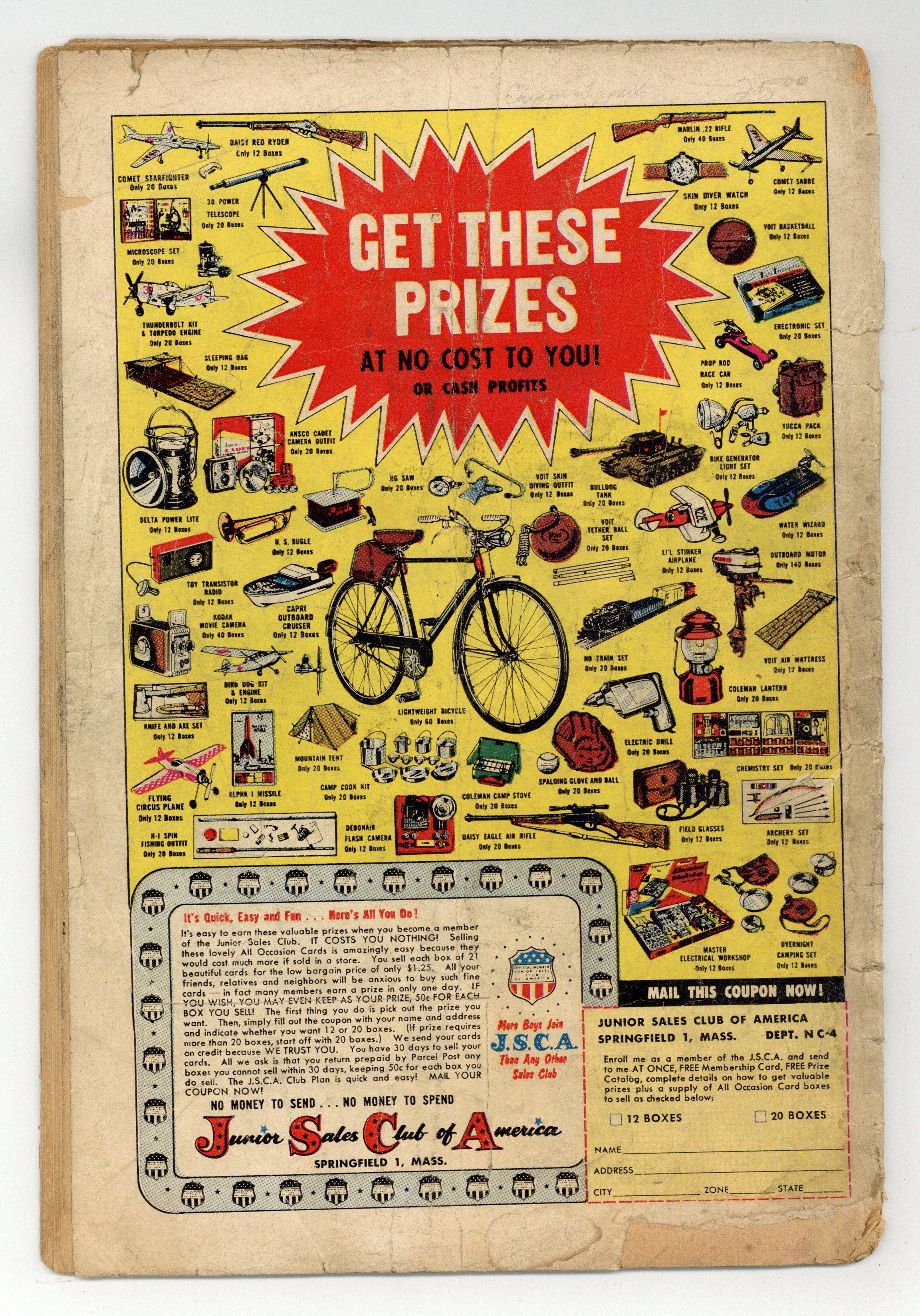 - 8.5" Cumulative spine split. Cover and centerfold detached.