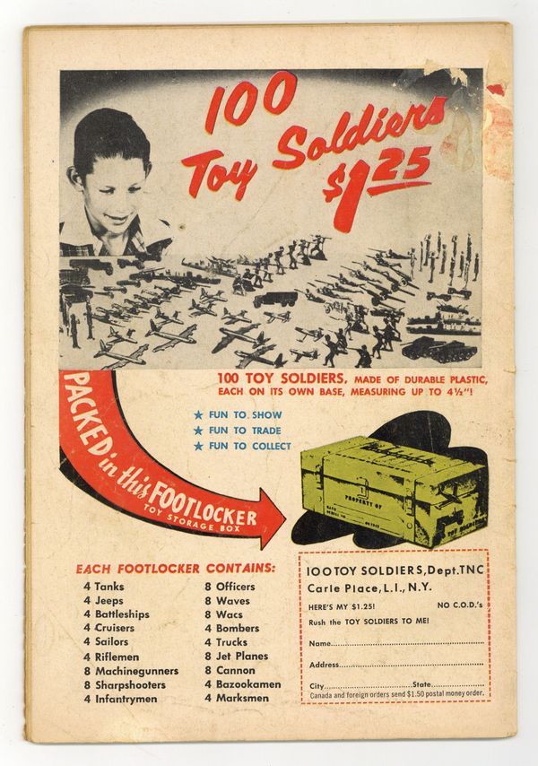$43.00Last 10-cent cover price. Cover pencils by Curt Swan, inks by Stan Kaye. "Superman's Toughest Day!", script by Bill Finger, art by Al Plastino; A day in Superman's life. His Clark Kent robot has to avoid showing the damage to his hands while on a date with Lois. One-page Shorty story by Henry Boltinoff. One-page Sagebrush Sam story by Henry Boltinoff. "The Supergirl of Tomorrow!", script by Jerry Siegel, art by Jim Mooney; Using a time machine, a powerless Supergirl travels to the future, where her powers return and she frees humanity from the tyrannical reign of the Clan of Censors. One-page Little Pete story by Henry Boltinoff. 36 Pages, Full Color. $.10 Cover price $0.10.