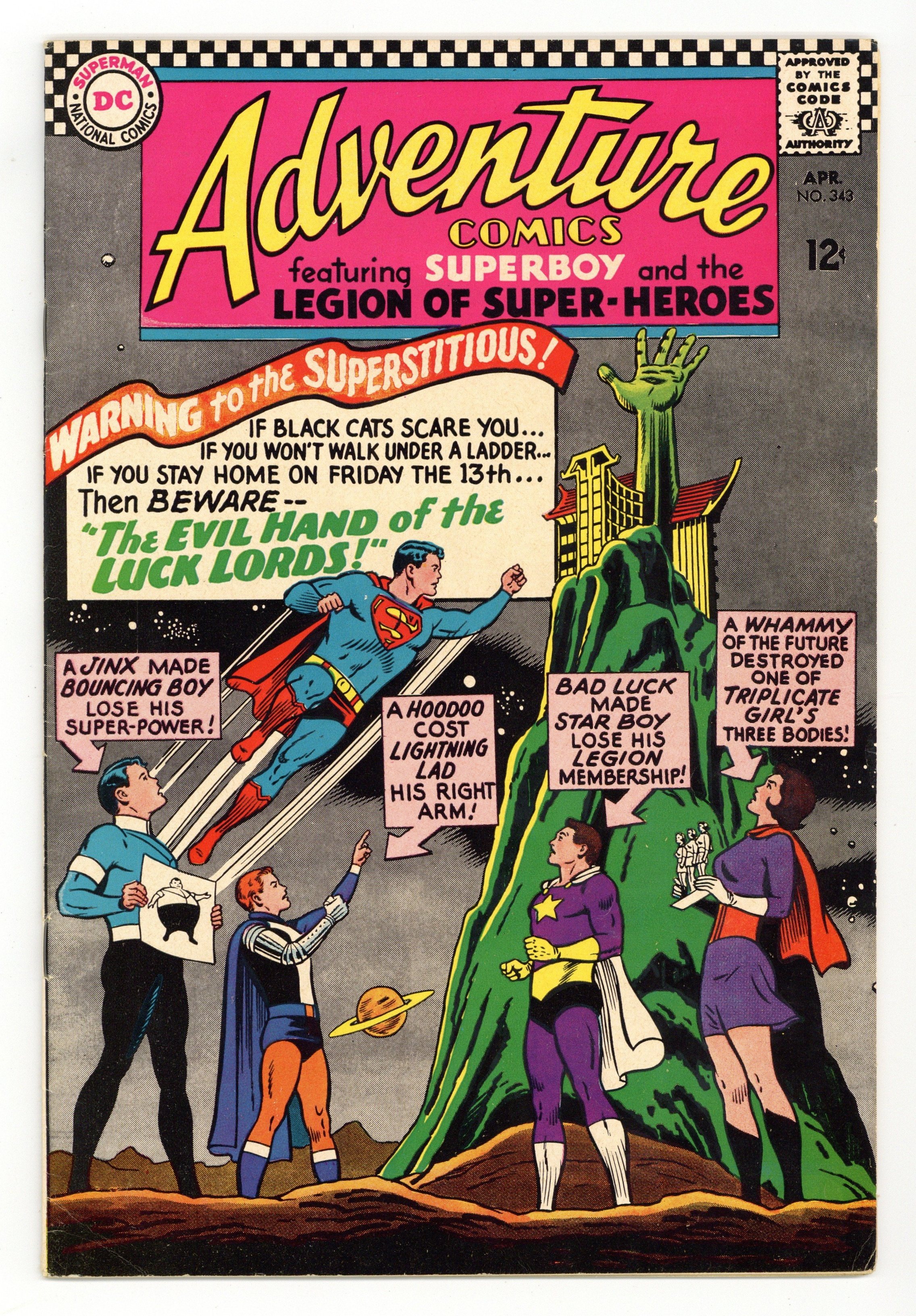 Cover pencils by Curt Swan, inks by George Klein. The Evil Hand of the Luck Lords!--Tales of the Legion of Super-Heroes, script by Edmond Hamilton, pencils by Curt Swan, inks by George Klein; Saturn Girl visits Thaun to investigate a series of Legionnaire jinxes, only to find that the evil Luck Lords used a super-hypnotic long-range ray. Cap's Hobby Hints--Matching Paint Colors activity page by Henry Boltinoff. Pete Ross' Super Secret!, script by Otto Binder, art by George Papp; Pete Ross discovers Superboy's secret ID. 36 Pages, Full Color. Cover price $0.12.