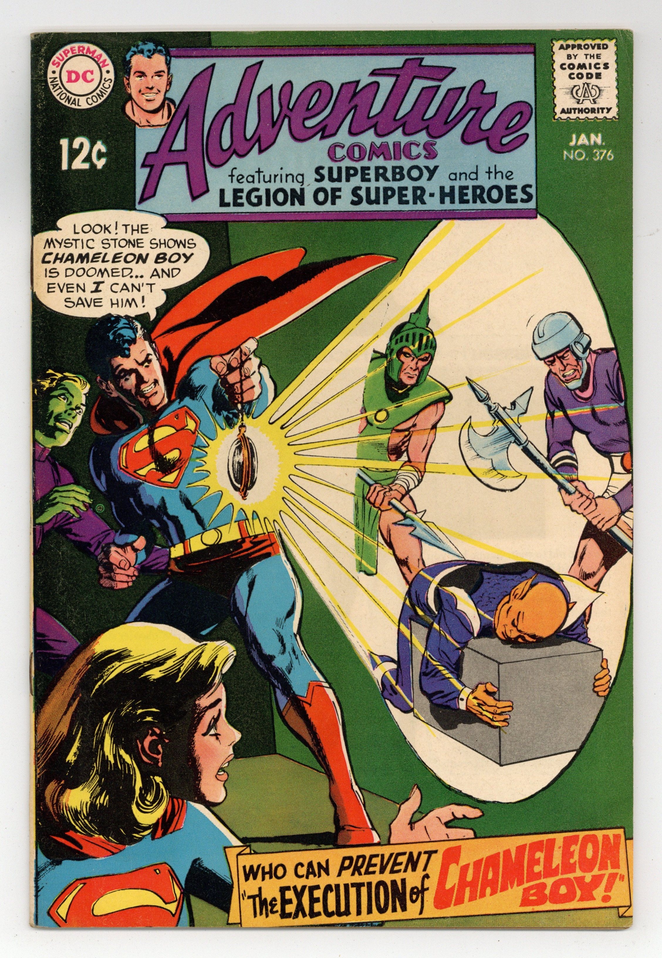 Cover pencils by Curt Swan, Carmine Infantino, and Neal Adams, inks by Neal Adams. The Execution of Chameleon Boy!--Tales of the Legion of Super-Heroes, script by Jim Shooter, pencils by Jim Shooter (layouts only) and Win Mortimer, inks by Win Mortimer; Chameleon Boy is transported to a dimension, where the world is like King Arthur's, where he fights for the daughter of the King. Letter to the editor from Neal Pozner. 36 Pages, Full Color. Cover price $0.12.