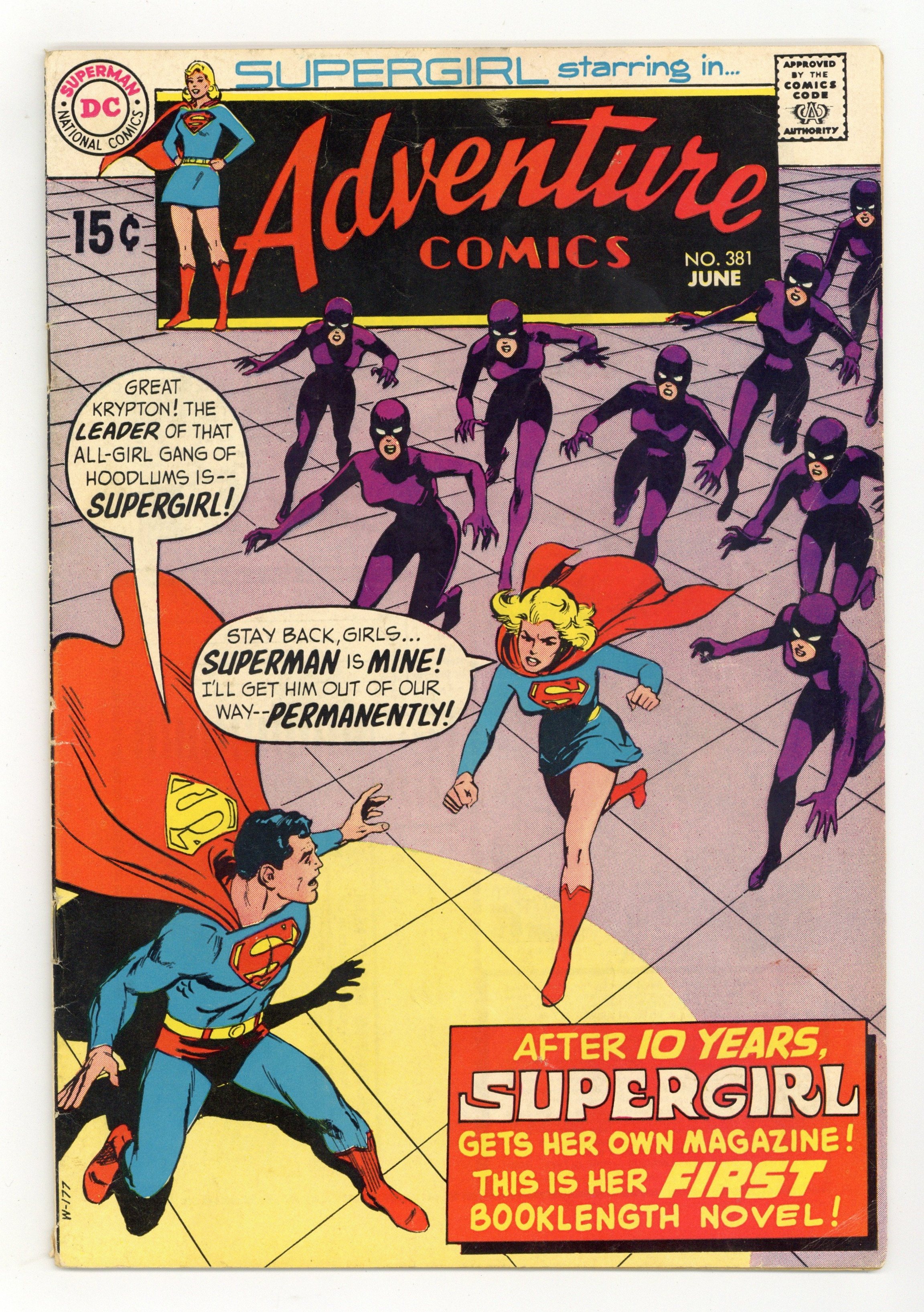1st full length Supergirl story and her 1st solo book. First 15-cent cover price issue. Cover pencils by Curt Swan, inks by Neal Adams. The Supergirl Gang starring Supergirl, Superman, Batgirl, Judy Belson, Jonathan Maxom, and Albert Maxom, script by Cary Bates, pencils by Win Mortimer, inks by Jack Abel; Supergirl becomes the lead character in the series; here she leads an all-girl gang of hoodlums. Series continues from Action #375. 36 Pages, Full Color. Cover price $0.15.