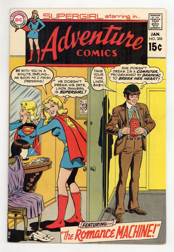 Cover pencils by Curt Swan, inks by Murphy Anderson. The Kindergarten Criminal, script by Leo Dorfman, pencils by Win Mortimer, inks by Jack Abel; Supergirl battles Lex Luthor. The Romance Machine, script by Cary Bates, art by Kurt Schaffenberger; a computer is programmed by Brainiac to break Supergirls heart. 36 Pages, Full Color. Cover price $0.15.