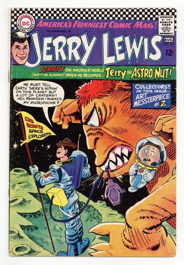 Jerry the Astronut! - Written by Arnold Drake? Art by Neal Adams. Cover pencils by Bob Oksner. Jerry's on another world! (Isn't he always?) Also starring Renfrew and Witch Kraft. Plus: A Letter from Jerry. Also: Cap's Hobby Hints untitled activity half-pager by Henry Boltinoff. And: The Jerry Lewis Gallery of Art Messterpieces #2: Blue Boy. 32 pages, full color. Cover price $0.12.
