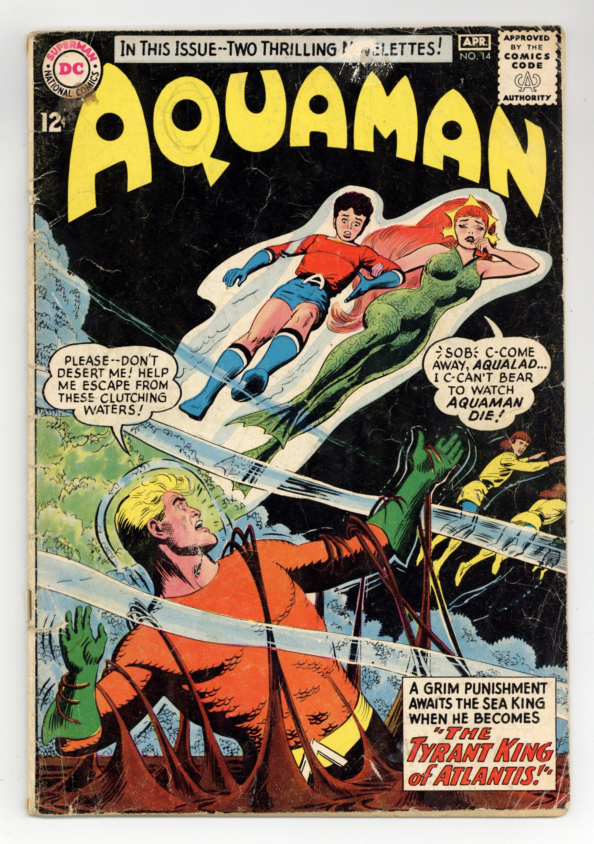 Cover art by Nick Cardy. Aquaman's Secret Powers!, script by Jack Miller, art by Nick Cardy; an old man bestows Aquaman with special powers; Aqualad guest-stars. Little Pete humor half-page by Henry Boltinoff. The Fish Out of Time article. The Tyrant Ruler of Atlantis! starring Aquaman, Aqualad, and Mera, script by Jack Miller, art by Nick Cardy. 36 pgs. $0.12. Cover price $0.12.