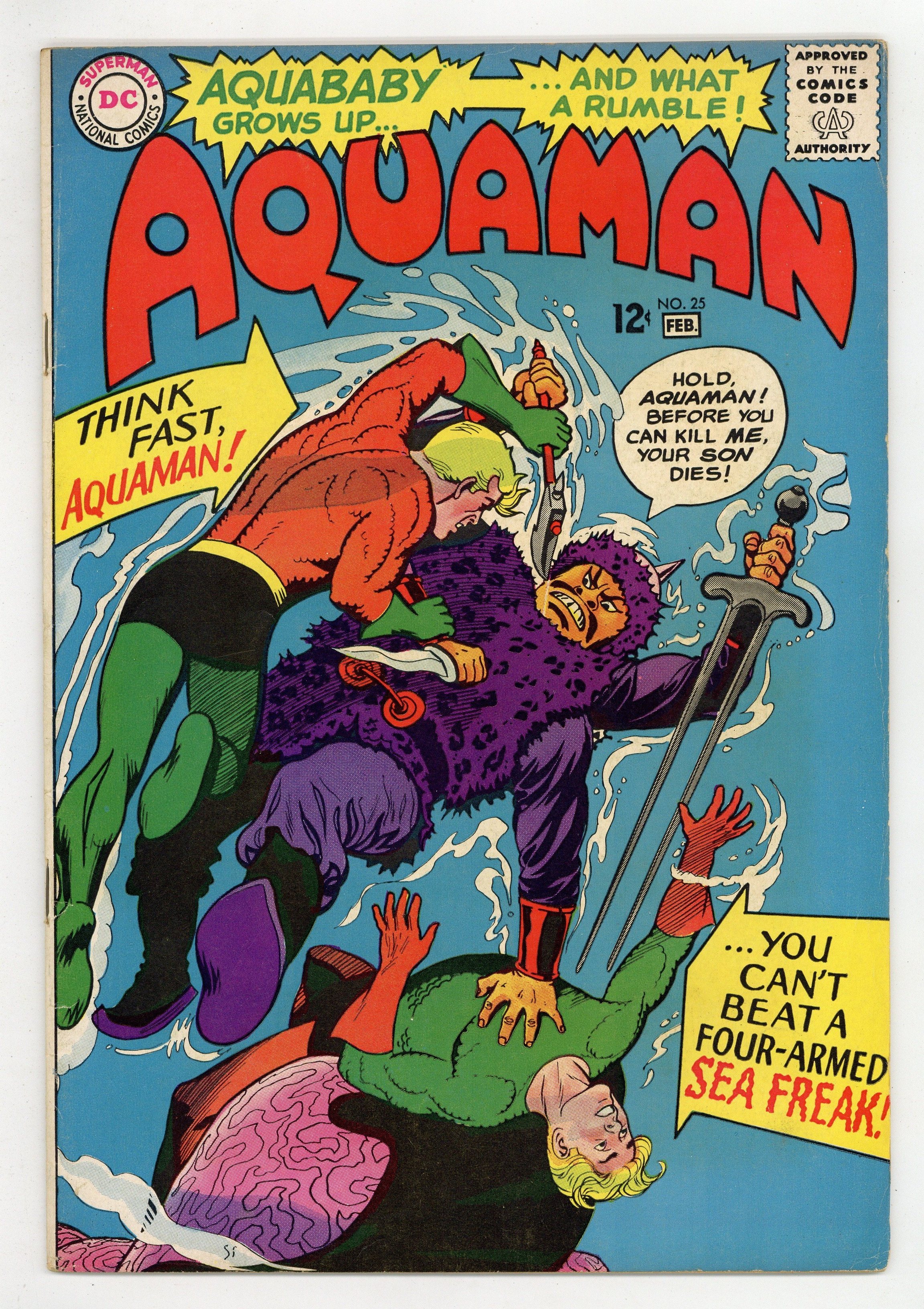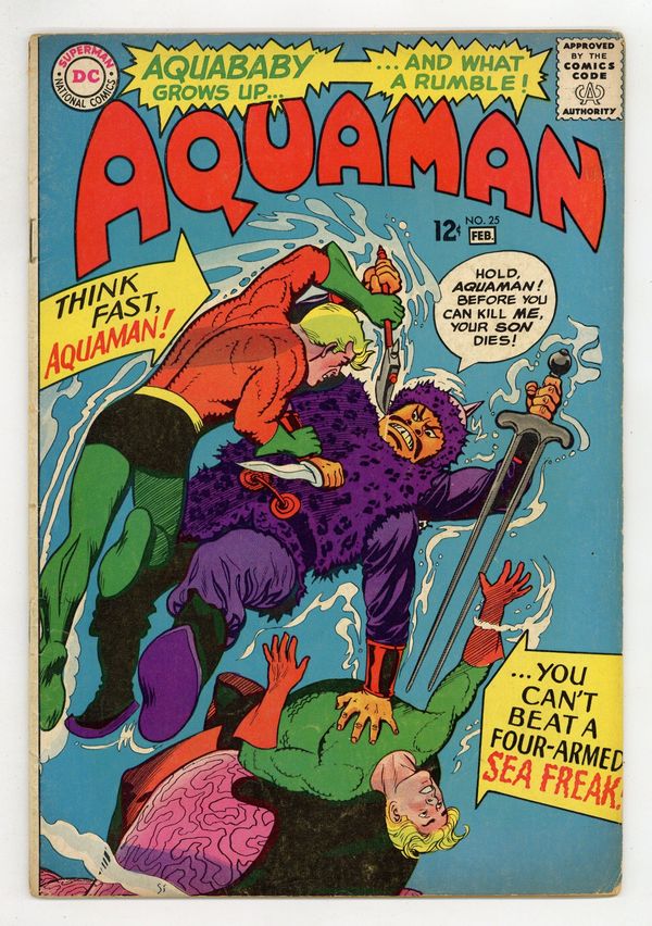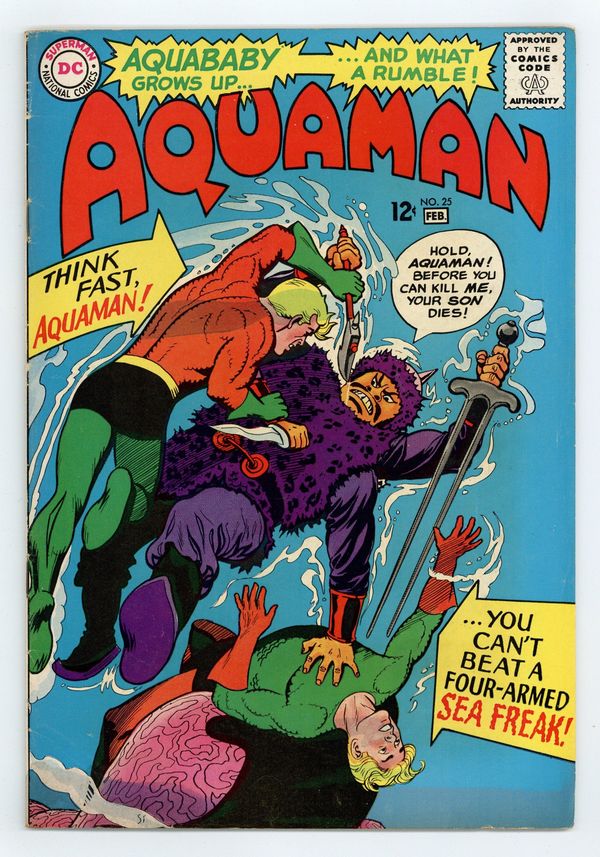 Cover art by Nick Cardy. The Revolt of Aquaboy starring Aquaman, Aqualad, Mera, Aquaboy, Aquababy, Tamerkhan, Attucka, and Liat, script by Bob Haney, art by Nick Cardy; a trio of Monguls invade Atlantis. Farmers of the Sea article. Cap's Hobby Center activity half-page by Henry Boltinoff. 36 pgs. $0.12. Cover price $0.12.