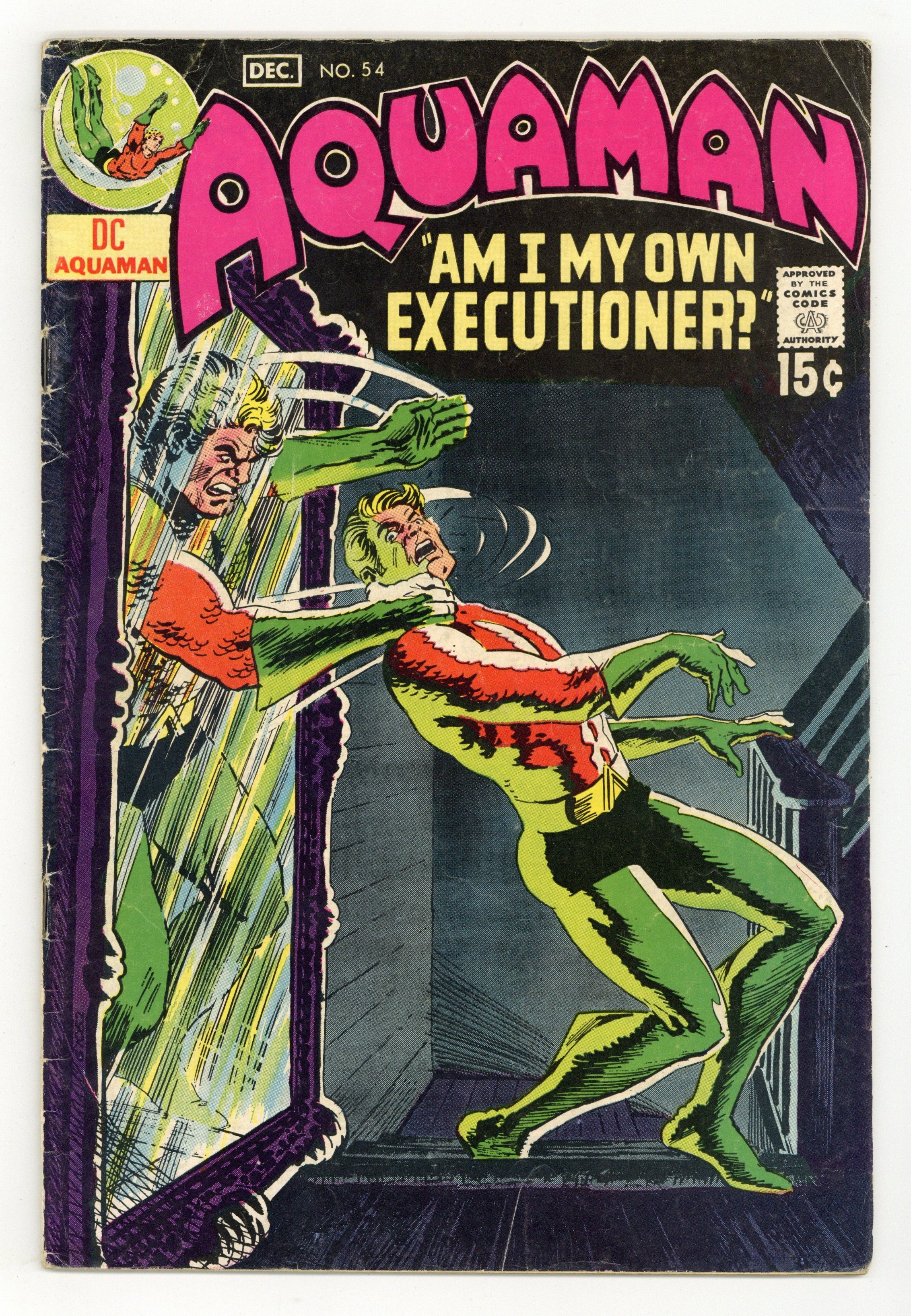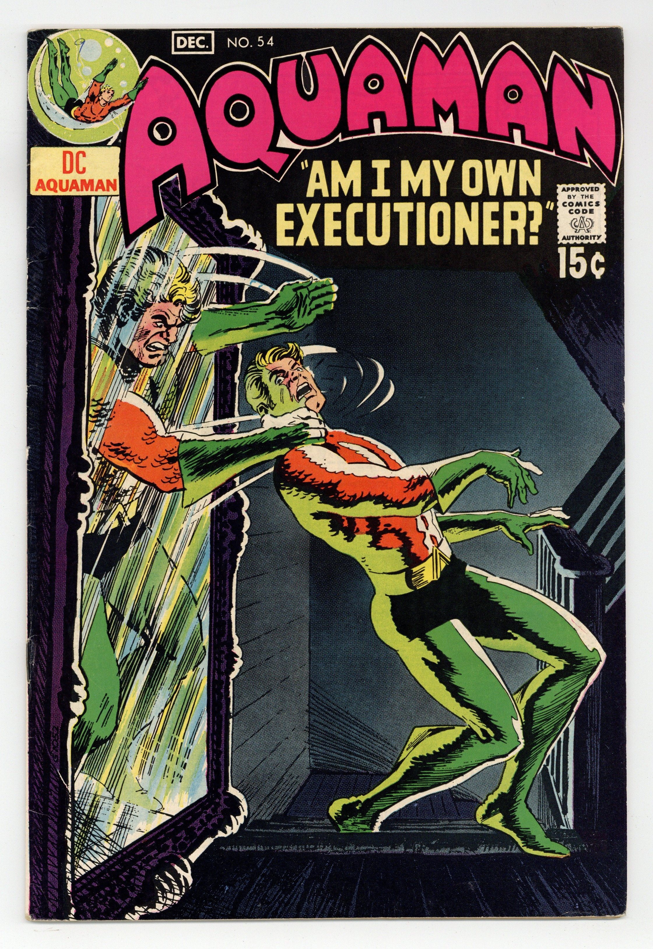 Cover art by Nick Cardy. Crime Wave!, script by Steve Skeates, art by Jim Aparo; prominent citizens of Atlantis, who are brainwashed, rob stores; Aquaman wakes up in a haunted house and later defeats Thanatos. The A-B-Seas of Skin Diving! fact two-pager, script by Robert Kanigher, pencils by Ross Andru, inks by Mike Esposito. 36 pgs. $0.15. Cover price $0.15.