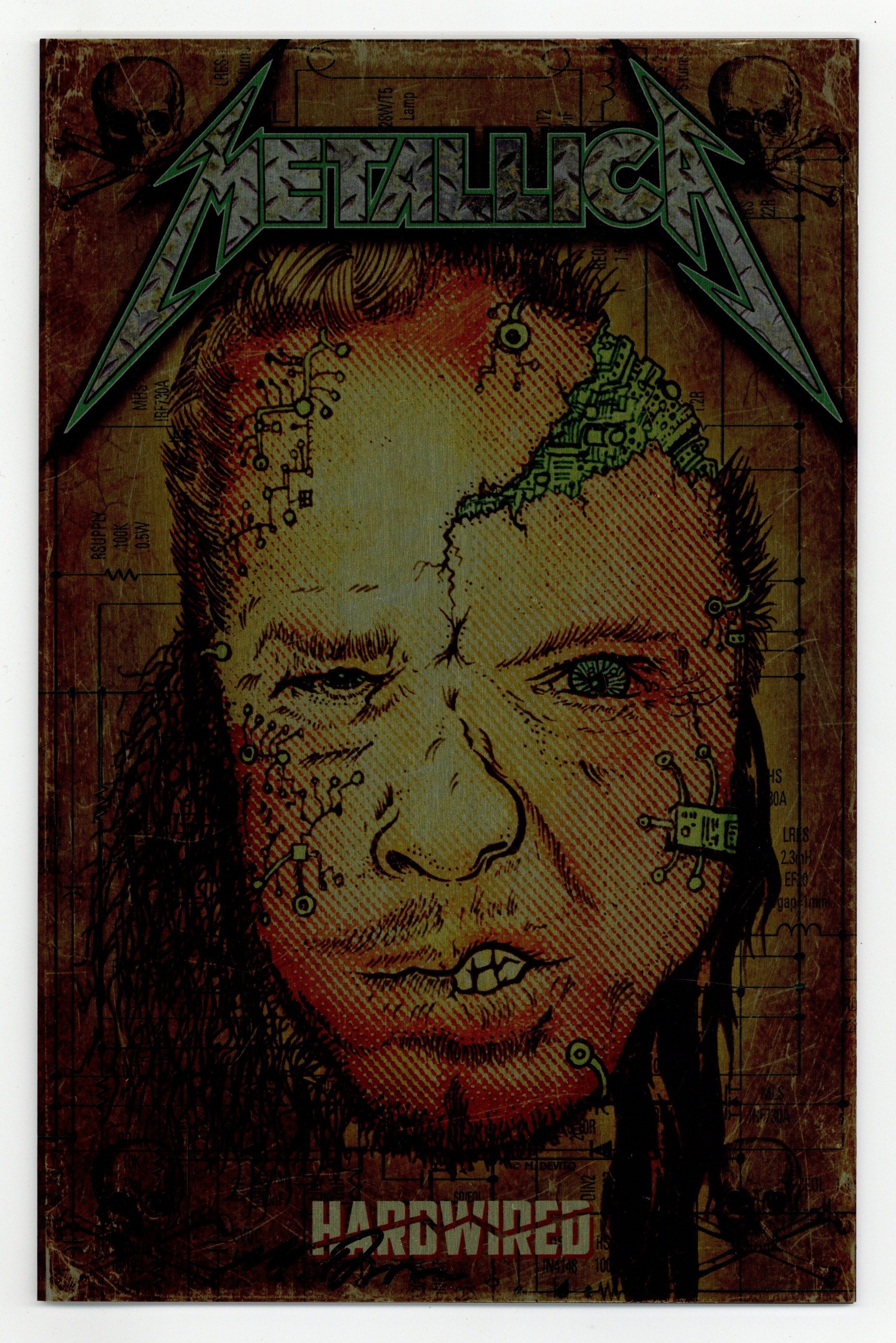 Retailer incentive Metal cover signed by artist Mark Devito. Written by Michael Aushenker. Art and Cover by Mats Engesten and Victor Moya. Rock and Roll Biographies featuring Metallica. The Bay Area Metal scene started with Metallica in the early 80's! Now 30 years later we pick up where this mega metal band is today! Giving a brief history of the band we jump right into 'Death Magnetic'-era Metallica. And going right into todays 'Hardwired for Self Destruction'. Includes an extensive listing of who's played with, or been in the band. 32 pages, B&W. Cover price $3.50.