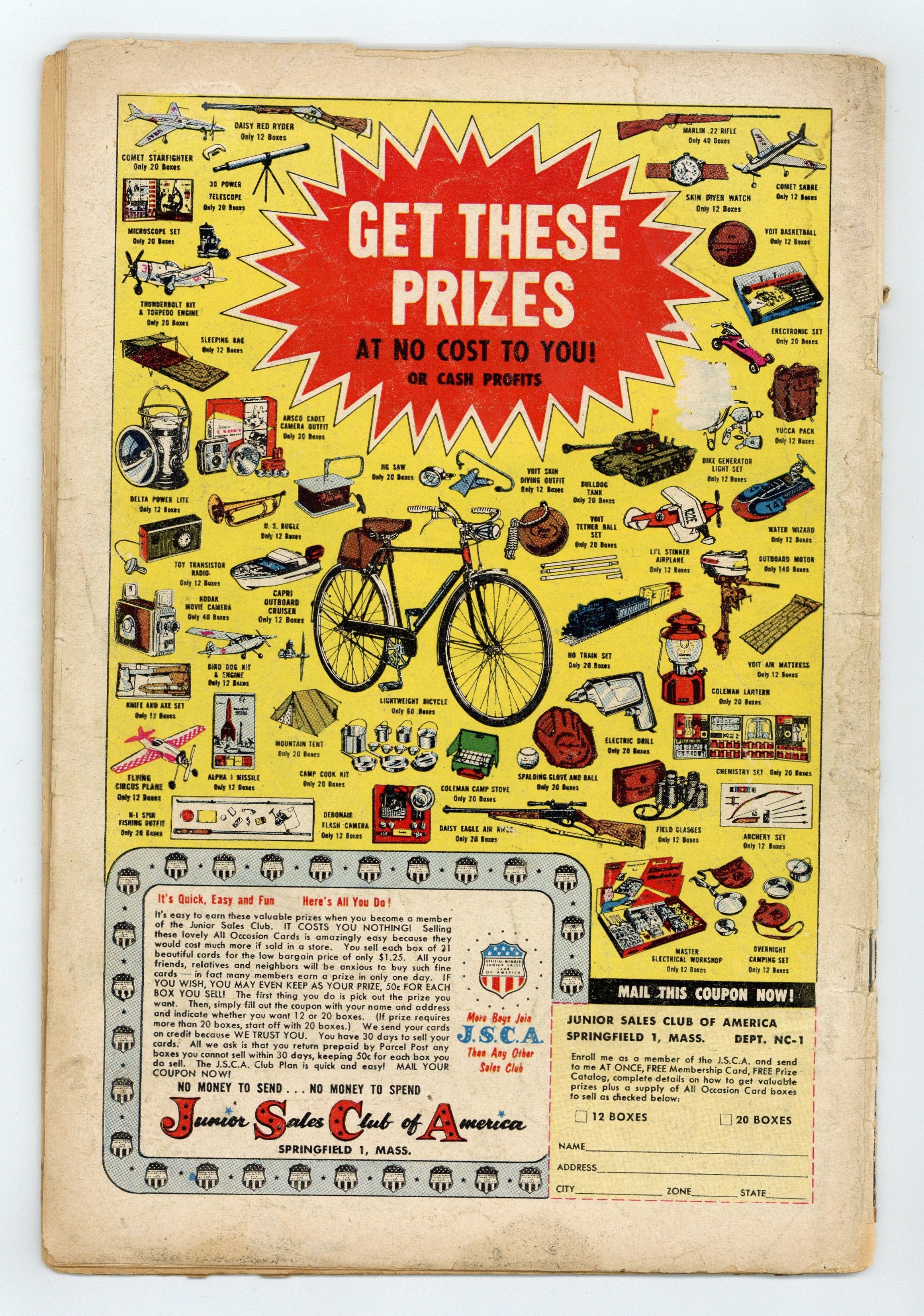 Cover pencils by Curt Swan, inks by Stan Kaye. "Prisoners of the Sargasso Sea," script by Bill Finger, pencils by Sheldon Moldoff, inks by Charles Paris; While chasing a modern-day pirate, Blackjack, Batman and Robin are marooned in the Sargasso Sea; There they discover others who have been trapped for centuries by the seaweed and its strange, age-defying gas. Detective Comics #265 ad. One-page Strange Old Laws story by Henry Boltinoff. "The Cross Country Crimes!", script by Bill Finger, pencils by Sheldon Moldoff, inks by Charles Paris; Batman and Robin foil Hijack and his gang, who have been robbing trucks of Carter trucking, including one containing platinum. "Double-Dealer in Diamonds" text story. One-page Warden Willis story by Henry Boltinoff. The Family Favorite! public service announcement, art by Bernard Baily. "The Marriage of Batman and Batwoman," script by Bill Finger, pencils by Sheldon Moldoff, inks by Ray Burnley; Dick Grayson goes to sleep while Bruce is out on a date with Kathy, and dreams of the loss of their secret identities caused by Bruce's and Kathy's marriage. 36 Pages, Full Color. Cover price $0.10.