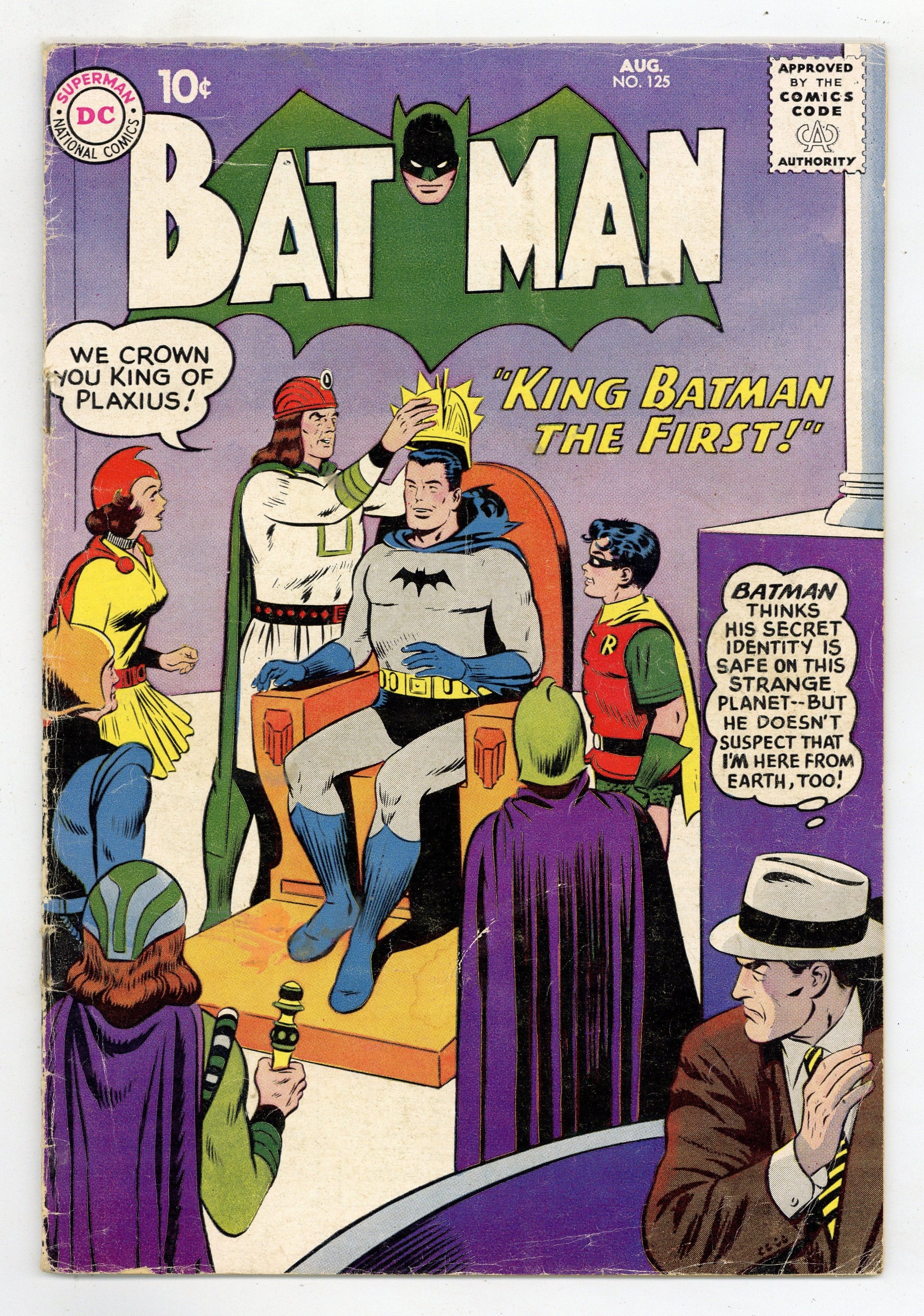 Cover pencils by Curt Swan, inks by Stan Kaye. "The Secret Life of Bat-Hound," script by Bill Finger, pencils by Sheldon Moldoff (as Bob Kane), inks by Charles Paris; After Ace is brought to permanently live at Wayne Manor by John Wilker, Bat-Hound goes into action with Batwoman to save the Caped Crusaders trapped in a cave-in. Half-page Crime Punishment! story. Tips on Summer Fun! public service announcement with Peter Porkchops, art by Rube Grossman. "The Last Days of Batman," script by Bill Finger, pencils by Sheldon Moldoff (as Bob Kane), inks by Charles Paris; Carter Nichols sends the Dynamic Duo back to ancient Venice to gather evidence in a case, but only Batman returns, while Robin is shifted to Gotham City a few days into the future, where he discovers a new criminal will kill Batman. Half-page Warden Willis story by Henry Boltinoff. "King Batman the First," script by Bill Finger, pencils by Dick Sprang, inks by Sheldon Moldoff; While chasing down a wanted criminal, the Dynamic Duo are transported to another planet where Batman becomes king, albeit temporarily, as his being an alien causes him to be imprisoned. 36 Pages, Full Color. Cover price $0.10.