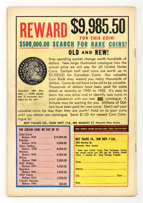 Cover by Sheldon Moldoff. "The Alien Force Twins," script by Jerry Coleman, art by Jim Mooney; Alien bandits create electrical twins of Batman and Robin to fend them off when the Caped Crusaders attempt to enter a strange city that appears out of nowhere. Your Pass to New Worlds! public service announcement about libraries, script by Jack Schiff, art by Sheldon Moldoff. Half-page Lefty Looie story by Henry Boltinoff. "The Boy Who Was Robin," script by Bill Finger, pencils by Sheldon Moldoff, inks by Charles Paris; A young cousin of Bruce's wreaks havoc by pretending to be Robin, even going so far as to hiring a crook/actor to play the role of Batman! Half-page Casey the Cop story by Henry Boltinoff. A letter from Tom Fagan of Rutland, Vermont about the Rutland Halloween Parade and its Batman float. "The Joker's Greatest Triumph," script by Bill Finger, pencils by Sheldon Moldoff, inks by Charles Paris; The Joker unmasks Batman but doesn't reveal his identity. Later, he unmasks the Caped Crusader again, only to reveal a robot beneath the cowl. 36 Pages, Full Color. Cover price $0.12.