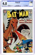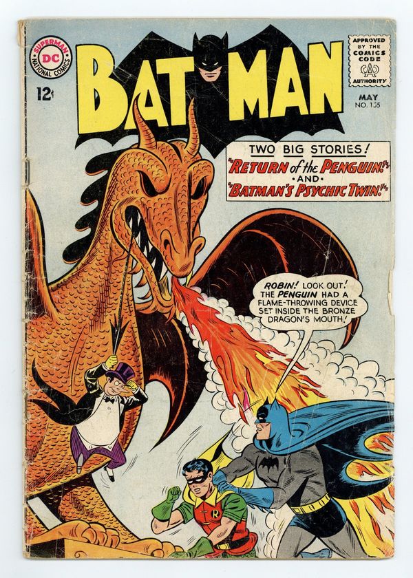 Cover art by Sheldon Moldoff. "Batman's Psychic Twin" starring Batman, Robin, and Kathy Kane, pencils by Sheldon Moldoff, inks by Charles Paris; A rare chemical explosion psychically links Batman with Jo-Jo Gagan, and when the underworld finds out about this, they turn on Gagan and attempt to kill him, believing that the Caped Crusader will perish as well. "The Return of the Penguin" (1st Silver Age appearance of the Penguin) starring Batman, Robin, and Vicki Vale, script by Bill Finger, pencils by Sheldon Moldoff, inks by Charles Paris; Emerging from semi-retirement, due to the mocking of the underworld, the Penguin renews his battle of wits with the Caped Crusaders with a series of new bird-related crimes. Full-page ad for Metal Men # 1. Countdown on Excellence public service announcement, script by Jack Schiff, art by Sheldon Moldoff; Jerry gets a lecture from his father on the importance of doing every job right. 36 Pages, Full Color. Cover price $0.12.