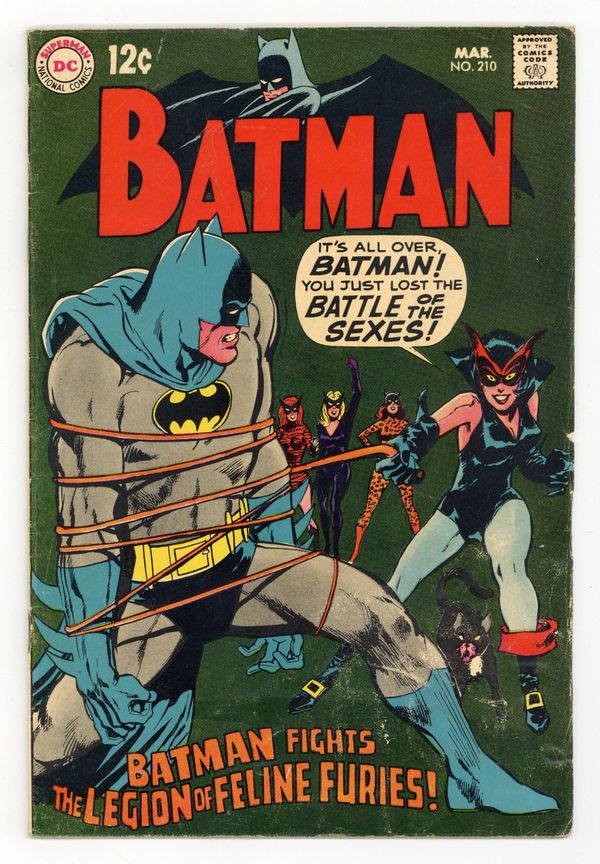 Cover by Neal Adams. "The Case of the Purr-loined Pearl!", script by Frank Robbins, pencils by Irv Novick, inks by Joe Giella; After being released from jail, Catwoman begins a a weight-reducing salon as Selina Kyle; She offers crash-reducing courses to eight women released from the Women's House of Detention; Catwoman defeats them in combat and gives them Catwoman costumes; That night Batman and Robin catch Catwoman's crooks driving the Catmobile and stealing a valuable pearl. Letter to the editor from comic writer Mark evanier. Statement of ownership--average print run 941,000; average paid circulation 533,450. 36 Pages, Full Color. Cover price $0.12.
