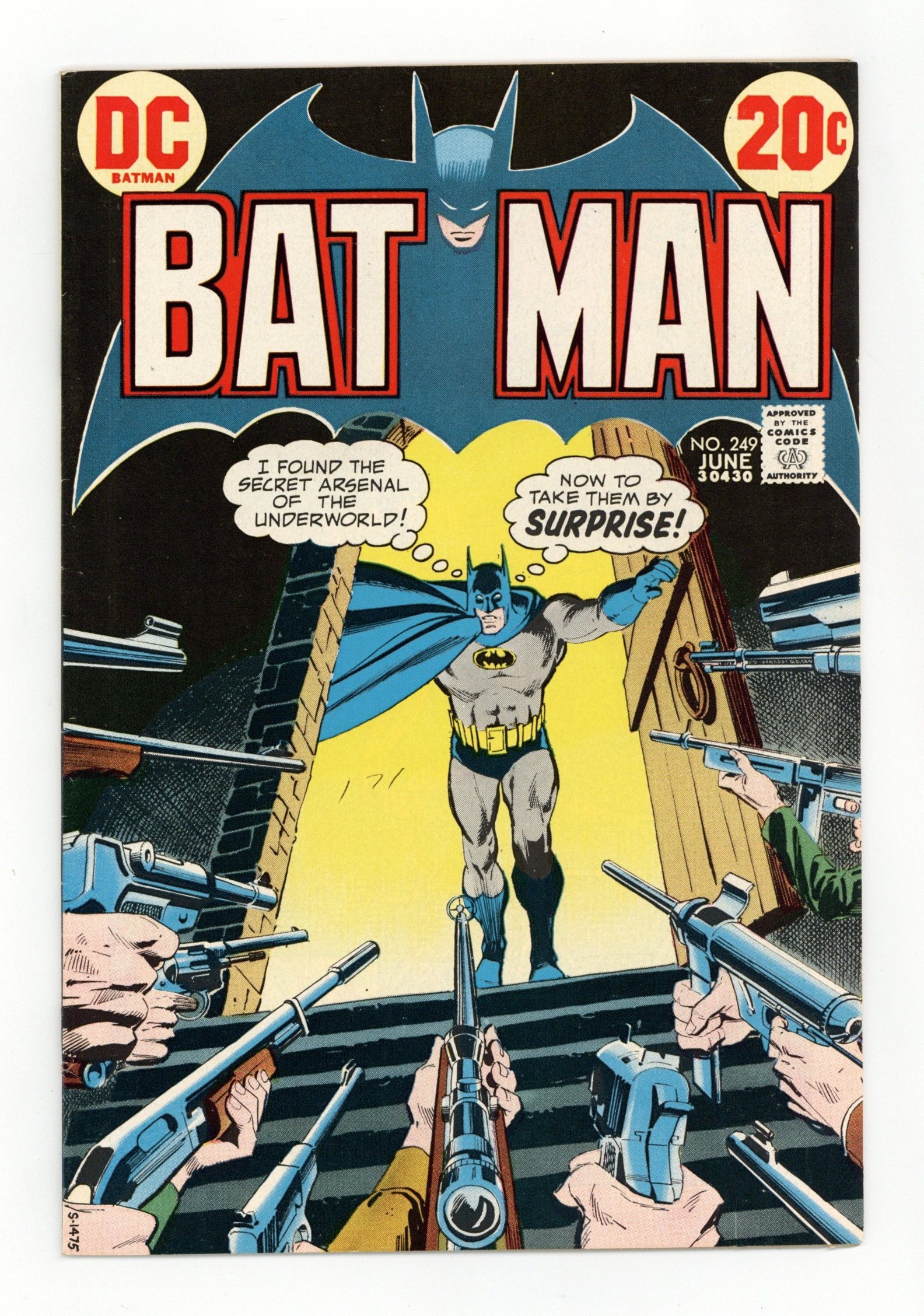 Cover by Dick Giordano. "The Citadel of Crime," script by Frank Robbins, pencils by Irv Novick, inks by Dick Giordano; Batman tracks down the boss behind a gun-smuggling operation. "Case of the Kidnaped Crusader!", script by Elliot S! Maggin, pencils by Bob Brown, inks by Frank McLaughlin; Tom Carson, a consumer advocate, goes missing during the test drive of a new experimental car. 36 Pages, Full Color. Cover price $0.20.