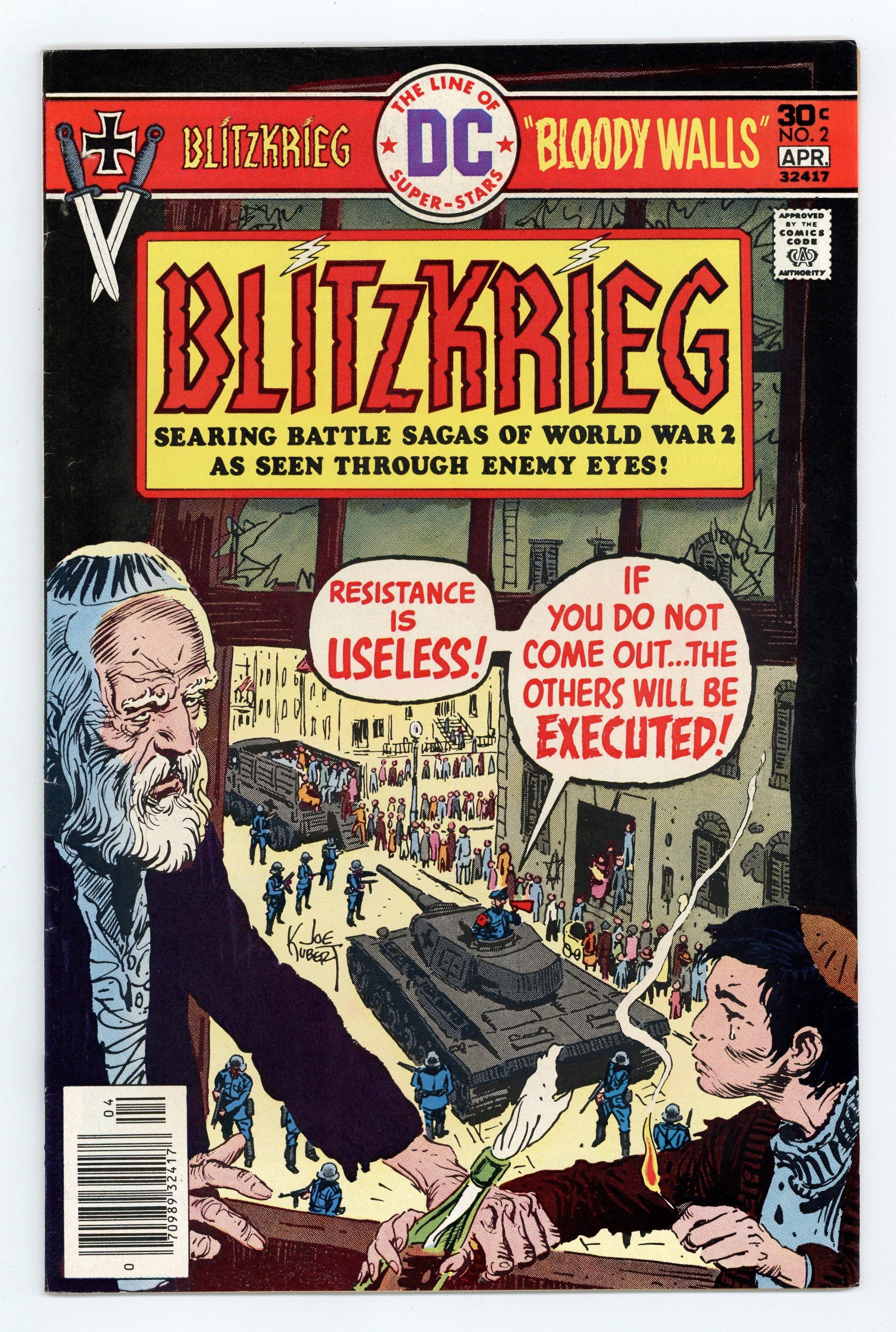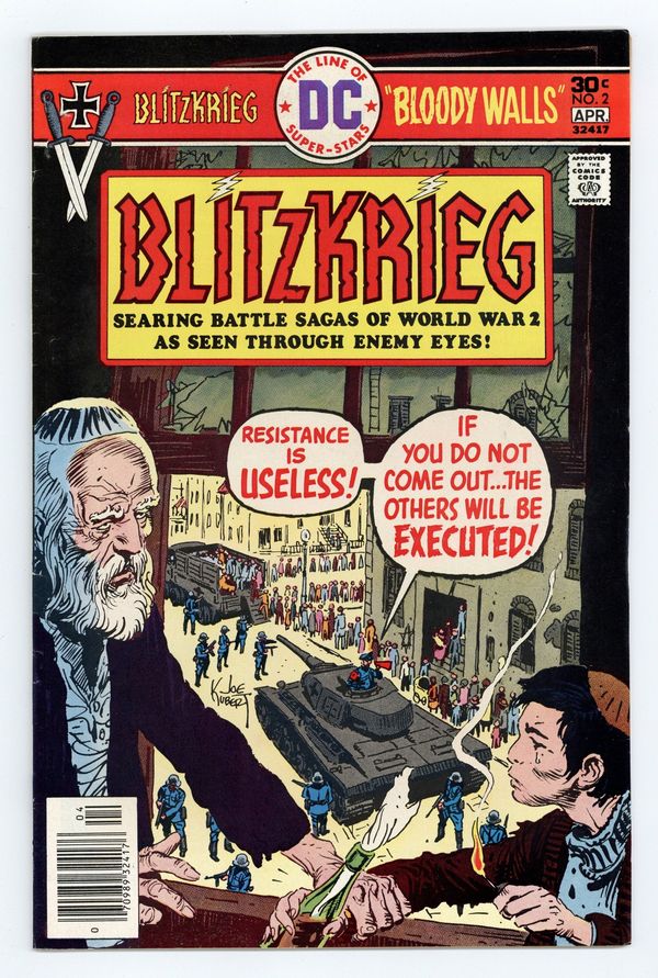 "Walls of Blood" and the Huns in "Circle of Death." Scripts by Bob Kanigher, art by Ric Estrada. Superman is featured in a one-page public service announcement, "Justice For All Includes Children" with art by Neal Adams. Captain Marvel (SHAZAM) stars in a one-page Hostess ad, "The Cup Cake Caper." (Pencils by Curt Swan?) Joe Kubert cover. Cover price $0.25.
