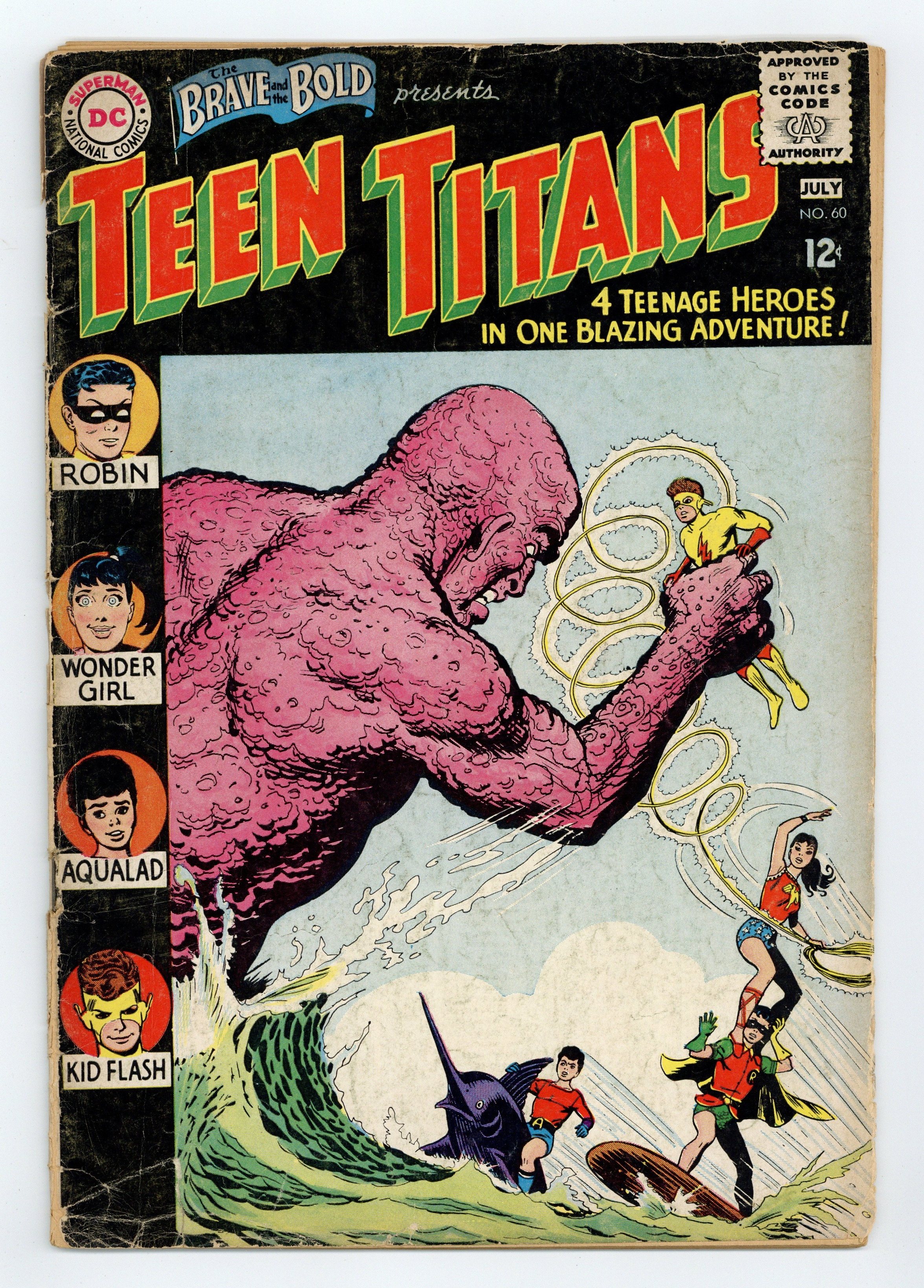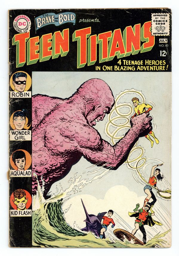 Cover by Nick Cardy. 2nd appearance of the Teen Titans (and 1st appearance of the new Wonder Girl, Donna Troy, who joins the Titans) in "The Astounding Separated Man," script by Bob Haney, art by Bruno Premiani; The town of Midville has decided to have itself a "Teen Day" and the mayor elects a "Teen Mayor" for the next 24 hours to celebrate, choosing local boy Tommy Holmes; Suddenly, a menace the towns folk known as the Separated Man attacks again, sending a giant hand to terrorize the city; With this danger on the loose, Tommy calls in the newly formed Teen Titans: Robin, Aqualad, Kid Flash and Wonder Girl to come and rescue the city. Superman ad. Legendary Teams article about Jason and the Argonauts, Hercules, Castor, and Pollux. Cap's Hobby Center by Henry Boltinoff. Happy Hobby Time! public service announcement starring Superboy, script by Jack Schiff, art by Win Mortimer. 36 Pages, Full Color. Cover price $0.12.