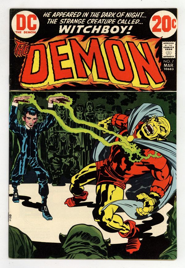 Merlin has stationed his guardian Demon, Etrigan at the forefront to protect mankind from the denizens of the Nether World and the things that go bump in the night. Sometimes even he needs help. Enter: Klarion the Witchboy. "A Witchboy!" Story and art by Jack Kirby. Cover price $0.20.