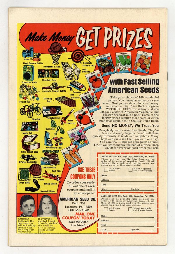 $70.00Merlin has stationed his guardian Demon, Etrigan at the forefront to protect mankind from the denizens of the Nether World and the things that go bump in the night. Sometimes even he needs help. Enter: Klarion the Witchboy. "A Witchboy!" Story and art by Jack Kirby. Cover price $0.20.