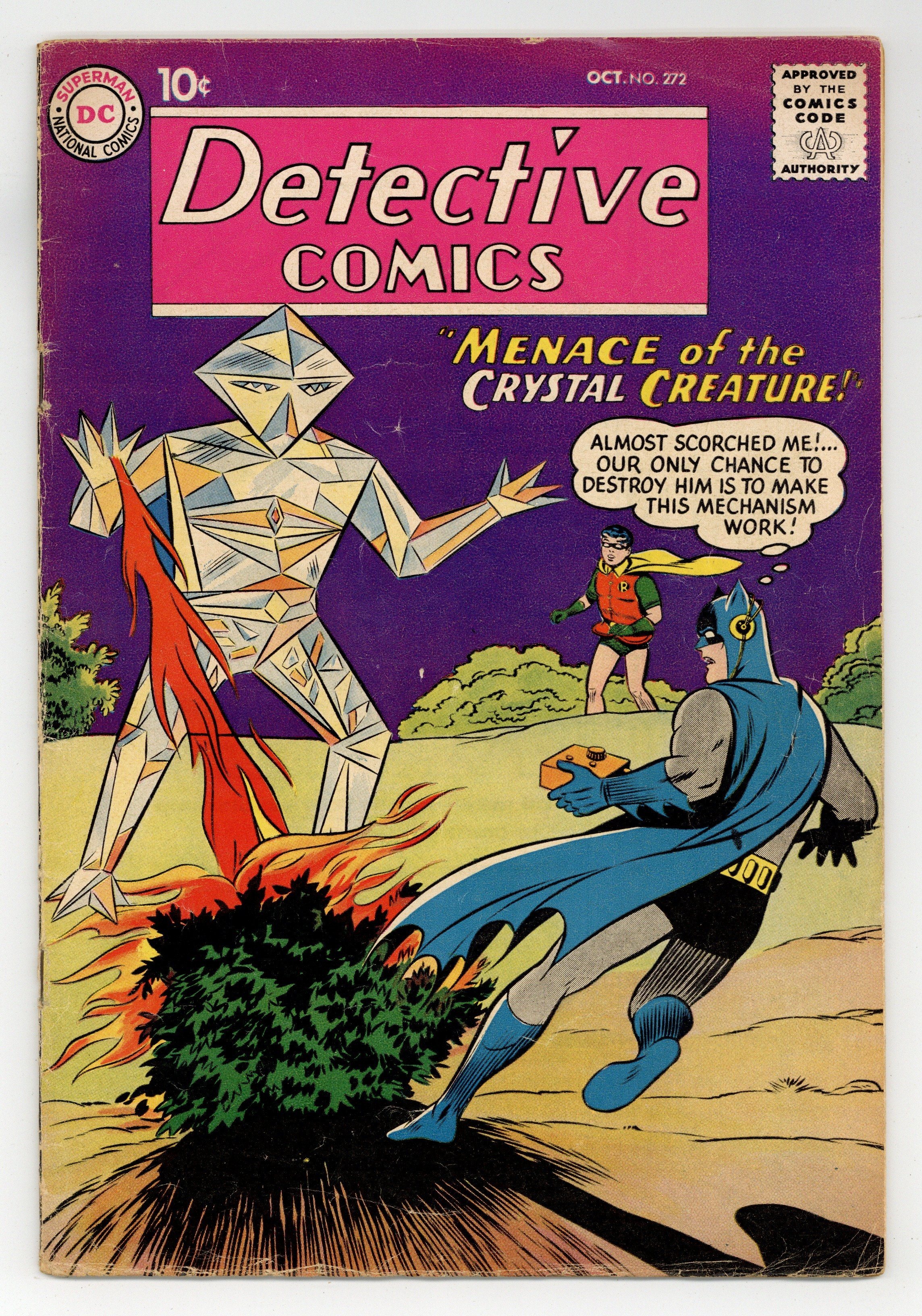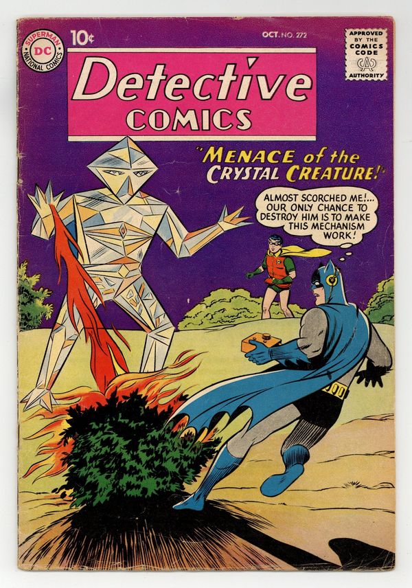Cover pencils by Curt Swan, inks by Stan Kaye. "The Crystal Creature" starring Batman and Robin, pencils by Sheldon Moldoff, inks by Charles Paris; Nuclear waste mutates sea life into a "Crystal Creature" that consumes metal, and Batman and Robin must save Gotham City from its menace; Thing worsen when some crooks try to capitalize on the presence of the crystal creature and they pose as the monster, distracting the Dynamic Duo from their main concern. It's Fun to Learn! public service announcement, script by Jack Schiff, art by Bernard Baily. Warden Willis humor page by Henry Boltinoff. "Roy Raymond's Fantastic Powers" starring Roy Raymond TV Detective, art by Ruben Moreira. Casey the Cop humor half-page by Henry Boltinoff; Because Jones has to testify in an important case, Harding assigns him a bodyguard. 36 pgs., full color. Cover price $0.10.