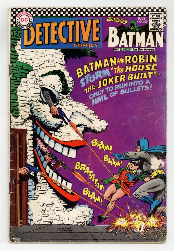 Written by John Broome. Art by Sheldon Moldoff (ghosting for Bob Kane) and Joe Giella. Cover by Carmine Infantino and Murphy Anderson. The House the Joker Built!; the Joker sells Joker merchandise and makes a television show of Joker/Batman fights. Written by Gardner Fox. Art by Sid Greene. The Crooks Who Captured Themselves!; Ralph Elongated Man tries to stop bad guys from robbing a coin shop, but stops the police instead. Letters to the editor from comics writers Mike Friedrich and Mark Evanier. 36 pages, full color. $0.12. Cover price $0.12.