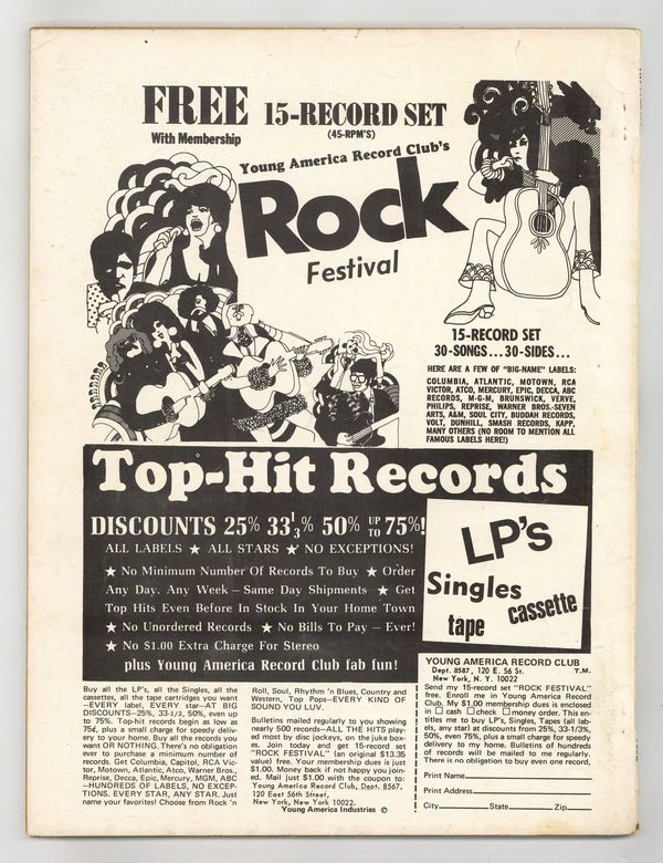 Published Aug 1970 by Charlton Publishing.$8.50Long running music magazine featuring articles, song lyrics and fan letters. This issue focuses on John Lennon and Yoko Ono, Joe Cocker, Ian Anderson, and more! 8 1/2-in. x 11-in., 68 pages, B&W Cover price $0.35.