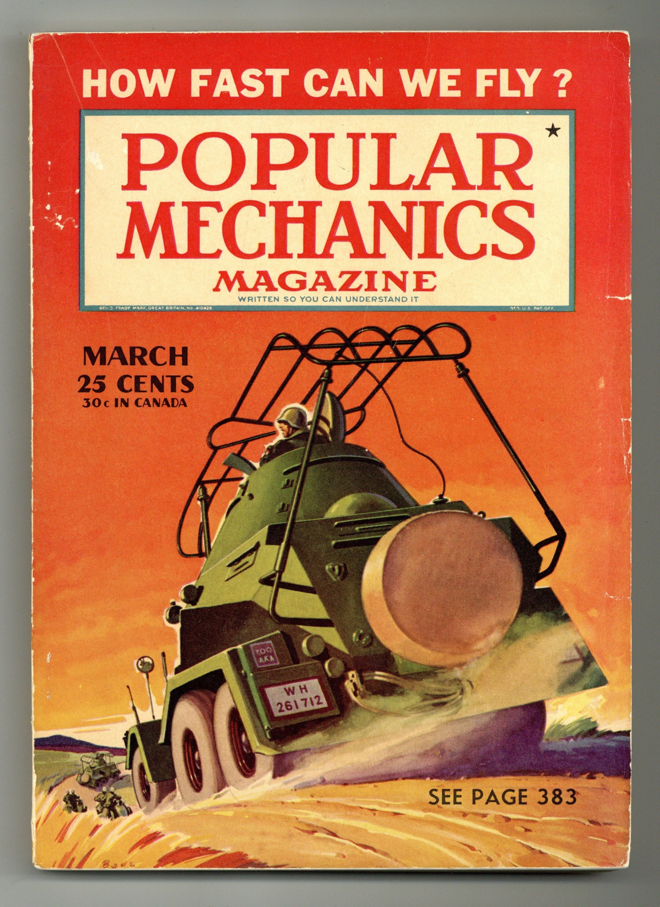 Published Mar 1941 by Popular Mechanics Co..$8.00Volume 75, Issue 3 - March, 1941. Mechanical science and technology magazine. 6.75-in x 9.5-in 252 pages, PC/PB&W. Cover price $0.25.