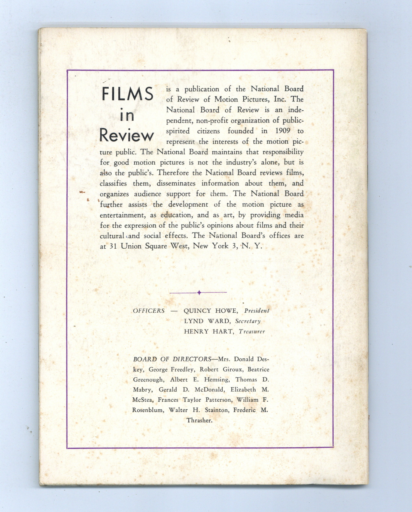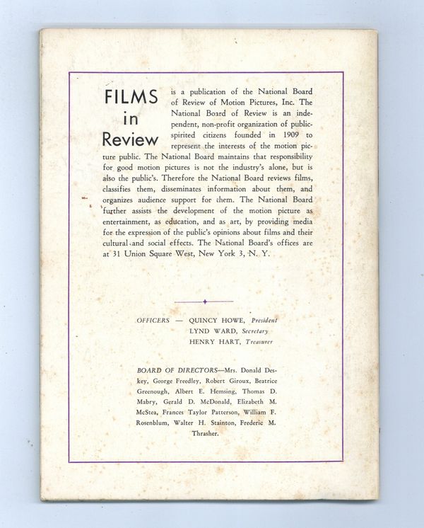 Published Oct 1962 by National Board of Review of Motion Pictures Inc..$5.40- Staple rust: Slight.