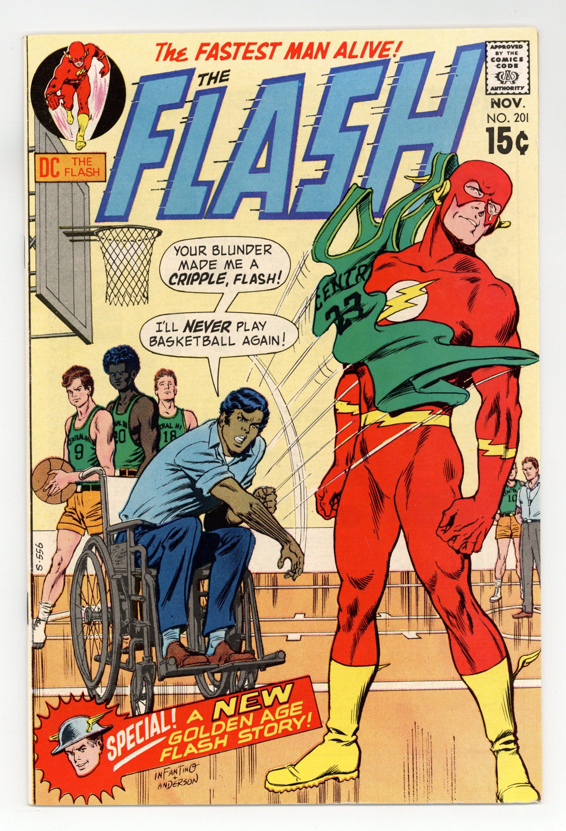 Cover pencils by Carmine Infantino, inks by Murphy Anderson. Million-Dollar Dream!, script by Robert Kanigher, pencils by Irv Novick, inks by Murphy Anderson; The Flash feels guilty when he believes hes responsible for paralyzing a young basketball stars legs. Finale for a Fiddler!, script by Robert Kanigher, art by Murphy Anderson; Jay and Joan attend an outdoor concert, but the Fiddler is taking money from the crowd. The Man with Future-Vision!, script by Gardner Fox, pencils by Carmine Infantino, inks by Bernard Sachs; An accident gives a man vision that sees events three months from now. Dark Shadows model kit ad. Adventure Comics and Detective Comics ad. Gigantic Strange Adventures and Giant Justice League of America ad. Snoopy Strikes Again strip ad for a Monogram model kit. Letter to the editor from comics writer Martin Pasko. 36 Pages, Full Color. Cover price $0.15.