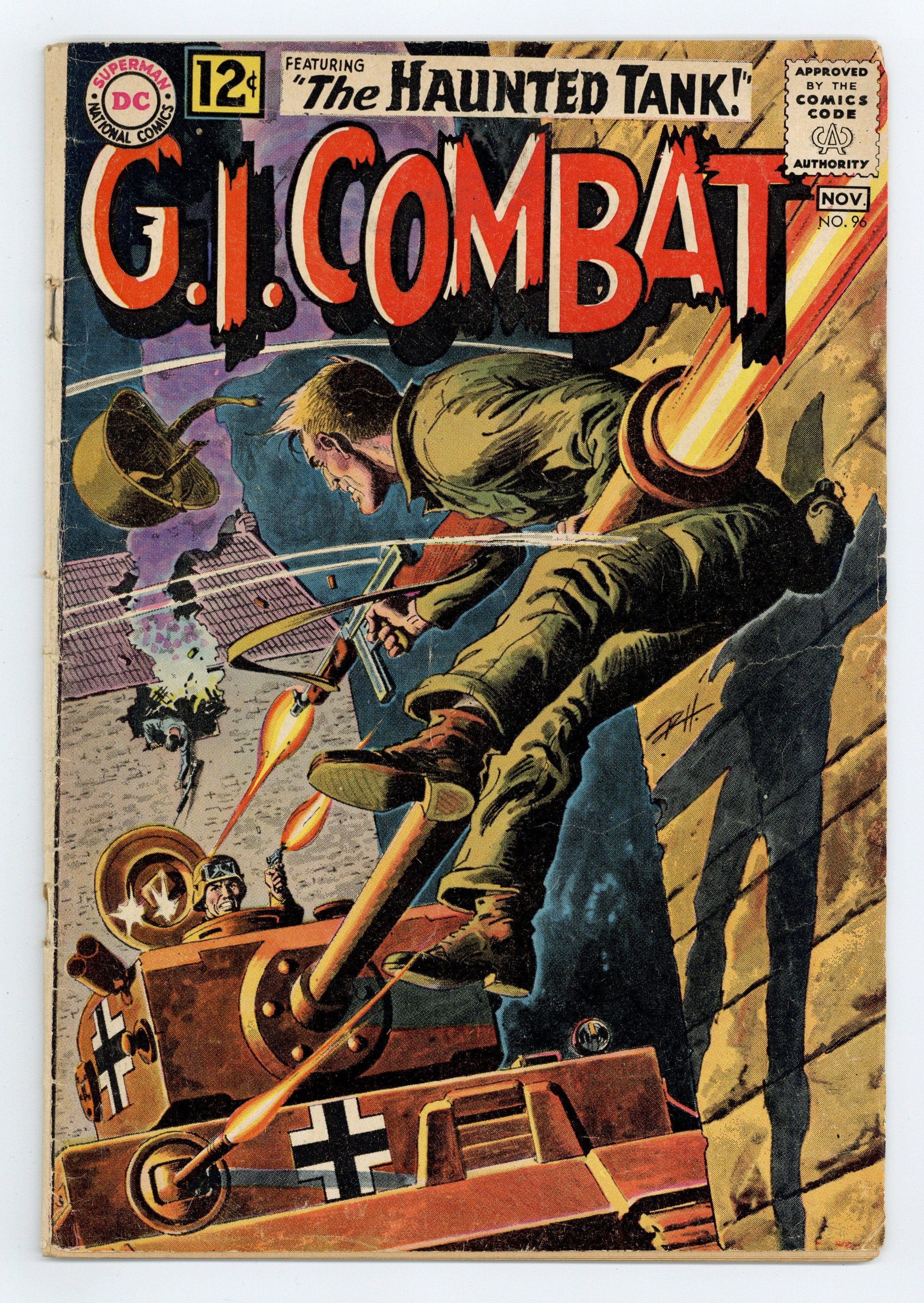 Cover by Russ Heath and Jack Adler (washtone). Written by Robert Kanigher and Hank Chapman. Art by Russ Heath and Jack Abel. When the Haunted Tank is disabled, the crew is left at a cross-roads to stop any German soldiers that break thru an allied advance in "The Lonesome Tank!" by Robert Kanigher and Russ Heath. Starring the Haunted Tank, Jeb Stuart, Arch Asher, Rick Rawlins, Slim Stryker and General J.E.B. Stuart (ghost). Plus: "Flying PT-Boat!" by Hank Chapman and Jack Abel; "The Biggest Sitting Duck in the Navy!" by Chapman and Heath; and half-pager "Bold and Wary!" 36 Pages, Full Color. Cover price $0.12.