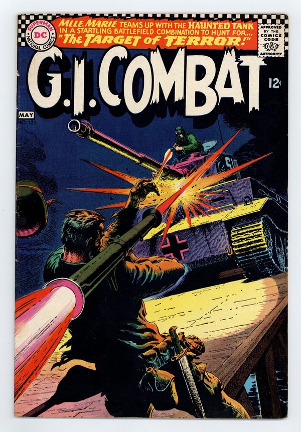 Cover by Russ Heath. Written by Robert Kanigher and Hank Chapman. Art by Russ Heath and Irv Novick. Mlle. Marie teams up with the Haunted Tank in a startling battlefield combination to hunt for..."The Target of Terror!" by Robert Kanigher and Russ Heath. Plus: "Sausage Pilot!" by Hank Chapman and Irv Novick. 36 Pages, Full Color. Cover price $0.12.