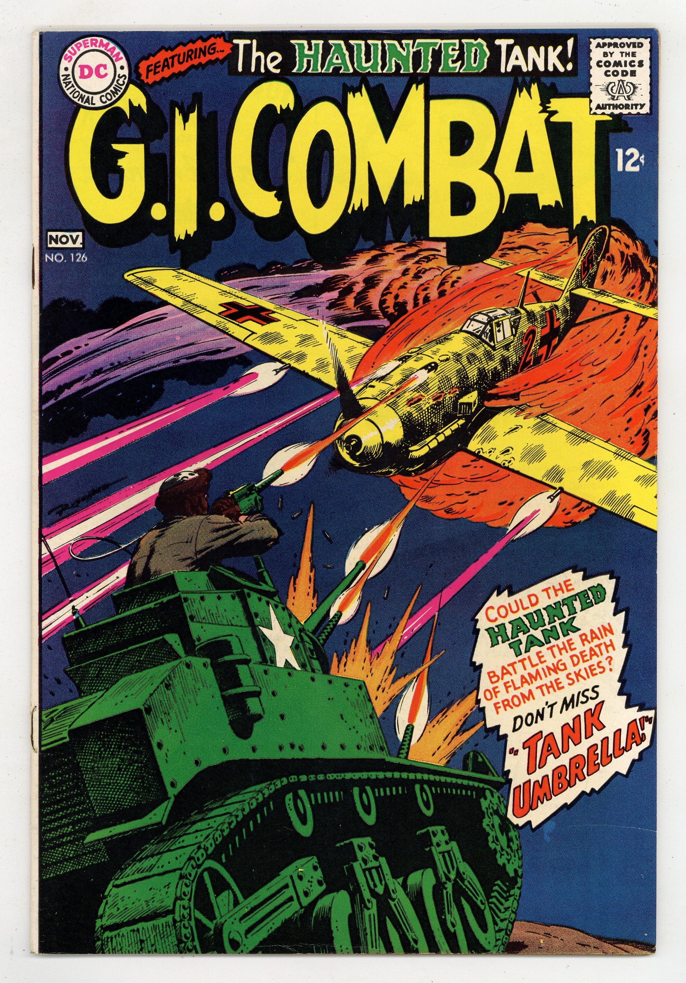 Cover by Russ Heath. Written by Robert Kanigher and Howard Liss. Art by Russ Heath and Jack Abel. Could the Haunted Tank battle the rain of flaming death from the skies? Don't miss..."Tank Umbrella!" by Robert Kanigher and Russ Heath. Plus: "Not Even the Dead Can Sleep!" by Howard Liss and Jack Abel. 36 Pages, Full Color. Cover price $0.12.