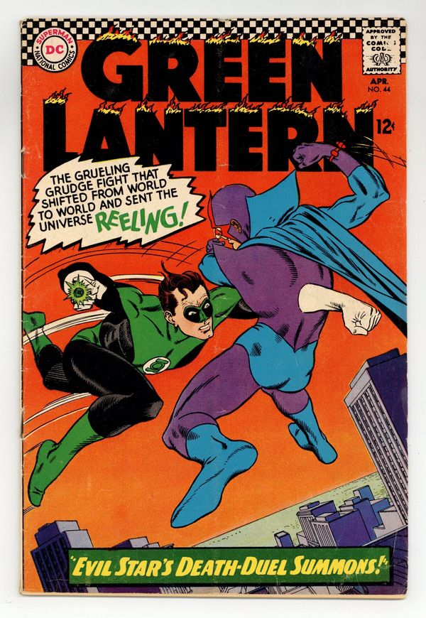 Cover pencils by Gil Kane, inks by Murphy Anderson. Evil Star's Death-Duel Summons, script by Gardner Fox, pencils by Gil Kane, inks by Sid Greene; Evil Star escapes from the Guardians and challenges Hal to a duel. Saga of the Millionaire Schemer!, script by John Broome, pencils by Gil Kane, inks by Sid Greene; Uncle Titus tries to prove Jim is Green Lantern. Letter from Mike Friedrich. Letter to the editor from comic writer Mike Friedrich. 32 pgs. $0.12. Cover price $0.12.