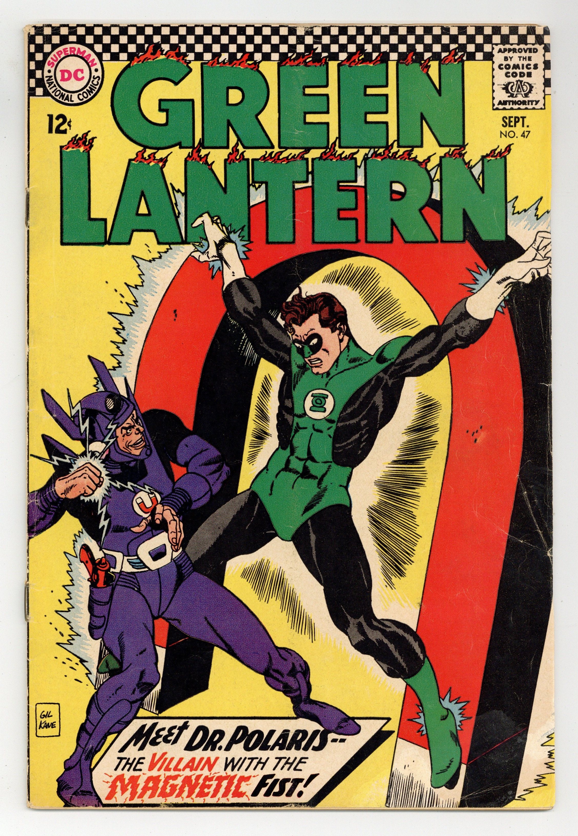 Cover art by Gil Kane. Green Lantern Lives Again!, script by John Broome, pencils by Gil Kane, inks by Sid Greene; Hal's lifeless body disappears from Oa, and ends up in 5700 A.D., where he must help stop a red virus; When he gets sent back home, he battles Dr. Polaris and saves Pieface. 36 pgs. $0.12. Cover price $0.12.