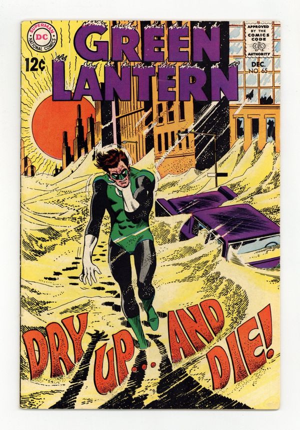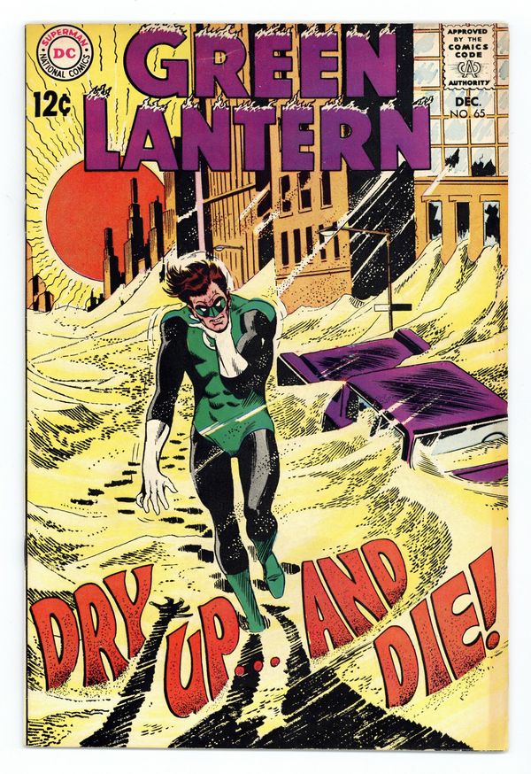 Tags: Green Lantern$15.75Cover pencils by Mike Sekowsky, inks by Joe Giella. Dry Up-- And Die!, script by Gardner Fox, pencils by Mike Sekowsky, inks by Joe Giella; When Dr. Emerson discovers an alien menace that will absorb all the water on Earth, he mentally reaches out to Green Lantern, trying to control his mind and bring him to solve the problem; When that doesn't work, he creates a duplicate of his former villainous alter-ago, Dr. Polaris, but cannot control that either, now leaving Green Lantern with two major problems. Captain Action and Action Boy Meet Dr. Evil toy ad. Superbaby ad. 36 pgs., full color. $0.12. Cover price $0.12.