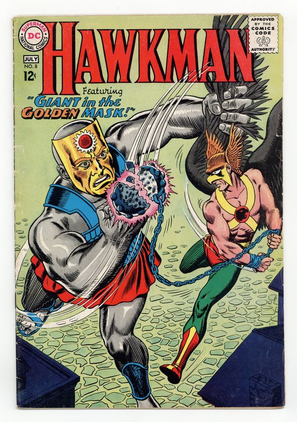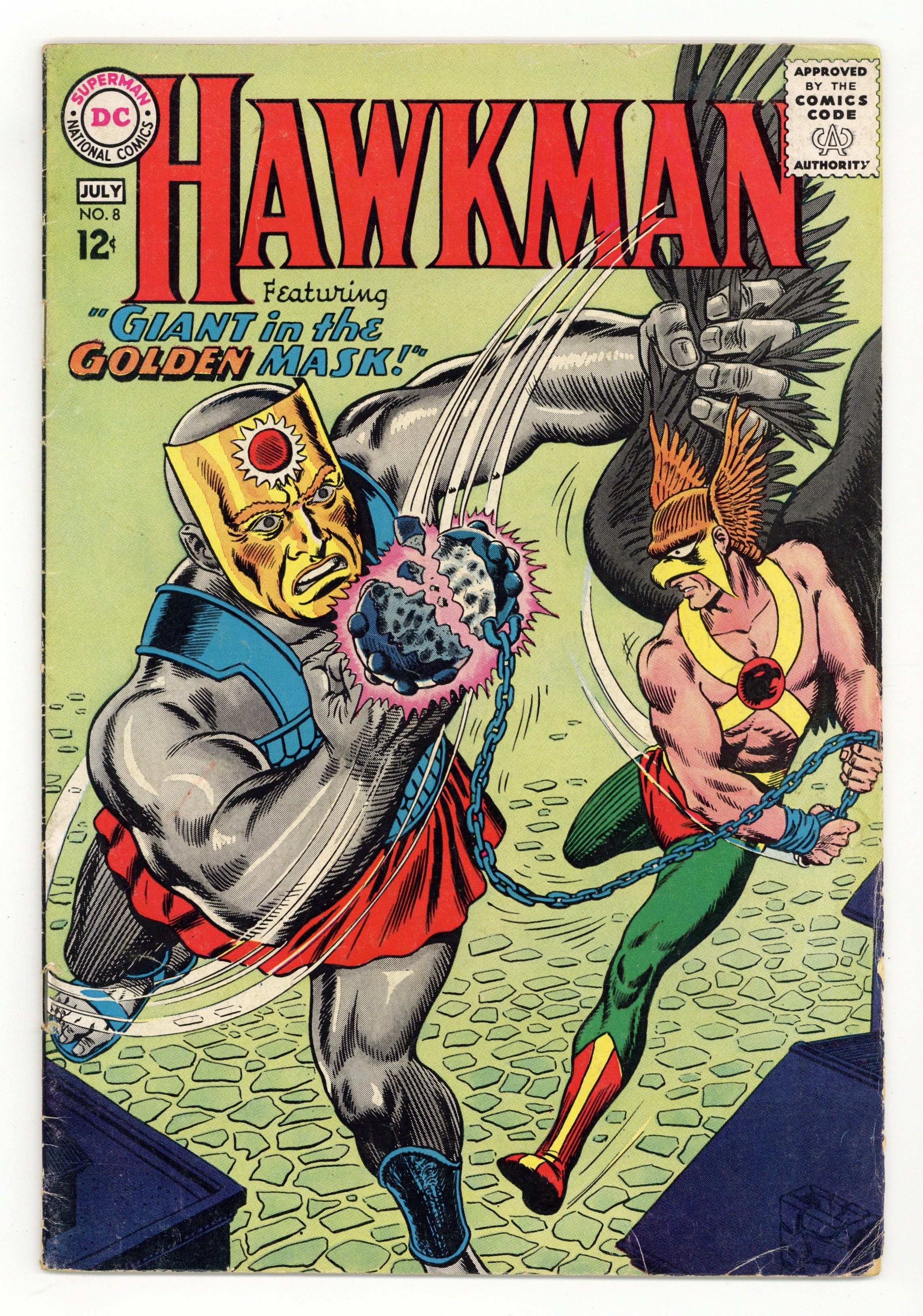 $12.75Cover art by Murphy Anderson. Happy Hobby Time! public service announcement starring Superboy, script by Jack Schiff, art by Win Mortimer. Giant in the Golden Mask!, script by Gardner Fox, art by Murphy Anderson; A mask supposedly forged by the god Vulcan leads the Hawks to Greece where they fight a giant made of metal. Battle of the Bird-Man Bandits!, script by Gardner Fox, art by Murphy Anderson; The Hawks encounter alien bird-beings which may have inspired the legend of the Harpies. House ad for 80 Page Giant (DC, 1964 series) #11. 36 pgs. $0.12. Cover price $0.12.