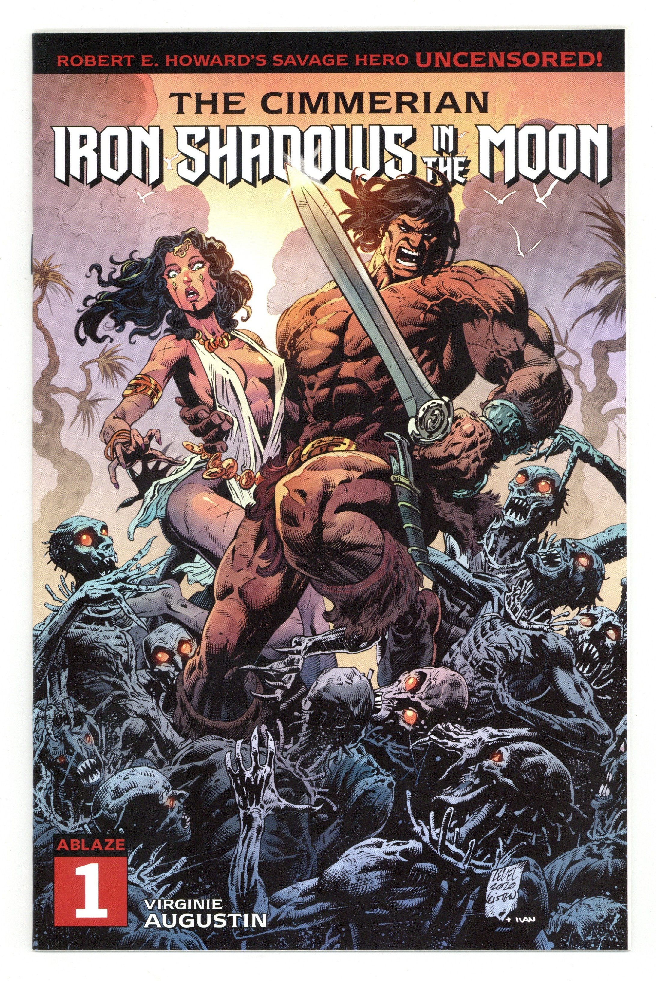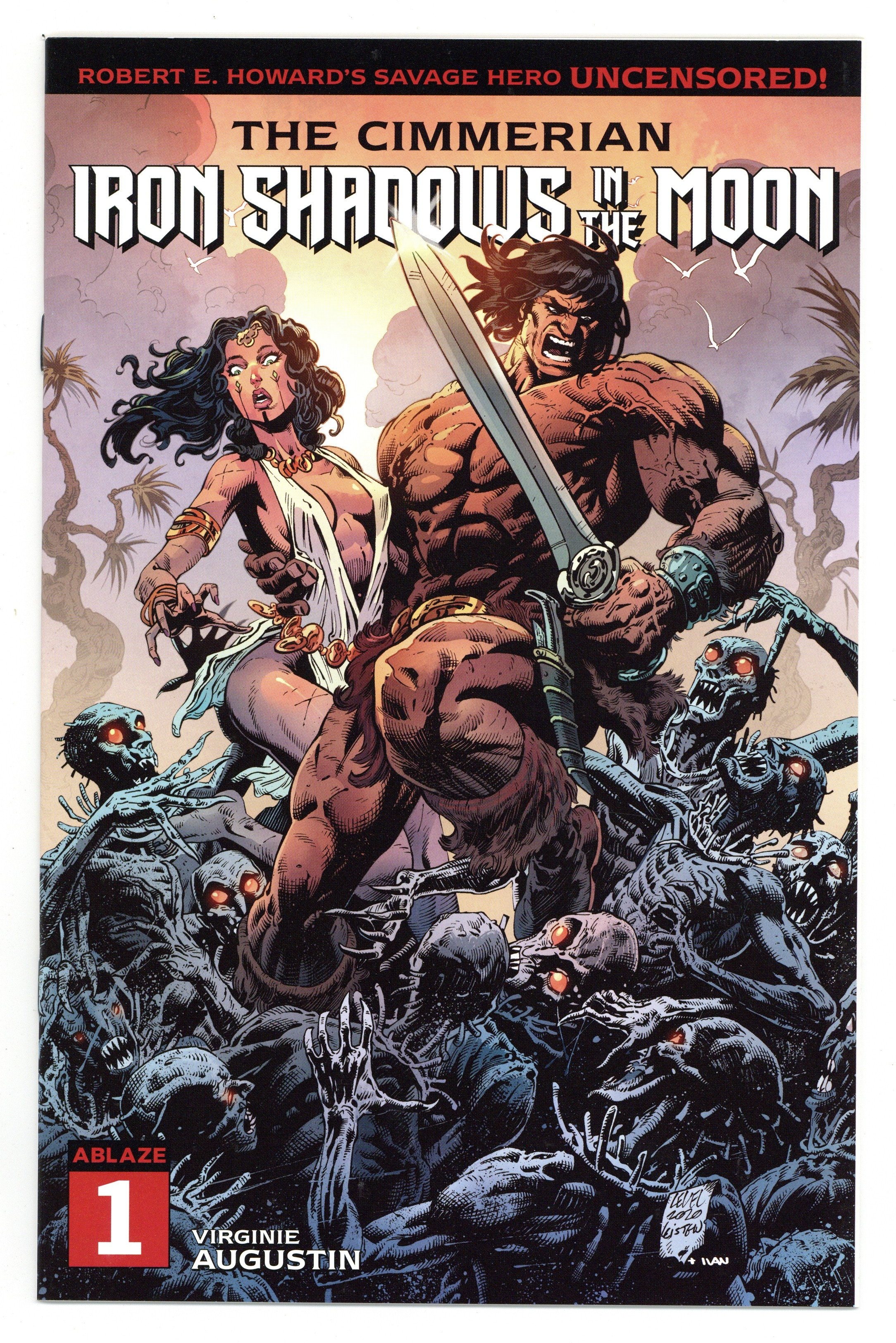 Written by Robert E. Howard & Virginie Augustin. Art by Virginie Augustin. Cover by Brian Level. Robert E. Howard's Conan is brought to life UNCENSORED! Discover the true Conan, unrestrained, violent, and sexual. Read the story as he intended! A young woman in danger is pursued by her vile master. Conan, whose family has just been wiped out by this same master, puts an end to the beauty's pursuer, and saves her with a blow of his sword. Bound by fate, the couple decide to hit the road together. Their journey takes them to an island where they discover strange ruins inhabited by dark magic. Their paradise-like refuge soon turns into a suffocating nightmare where shadows lurk. Who knows the extent of the dangers that lie there? They will quickly learn that on an island, the biggest threat does not always come from the outside... Iron Shadows in the Moon reveals the genius of its author in describing universes as singular as they are mysterious. With her line, both delicate and powerful, Virginie Augustin illustrates this oppressive and mystical atmosphere, and gives the story a new graphic breath. 32 pages, full color. Mature Readers Cover price $3.99.