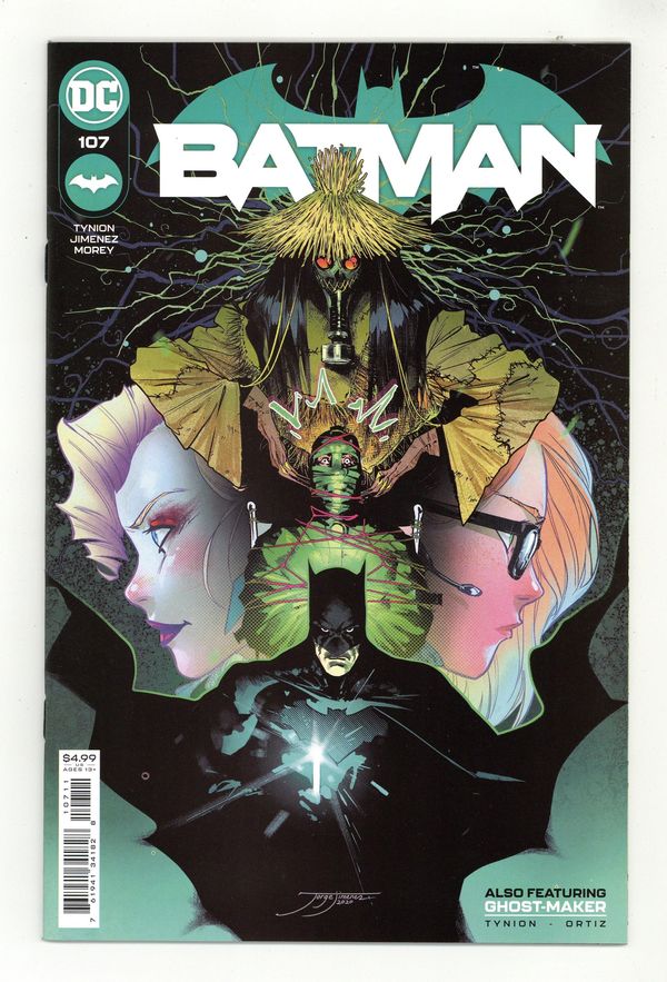 The Cowardly Lot: Part 2 of 6 - Written by James Tynion IV. Art by Jorge Jimenez, and Ricardo Lopez Ortiz. Cover by Jorge Jimenez. Tensions are sky-high in Gotham City following the attack on Arkham Asylum, and public opinion and unrest are starting to boil over. The Dark Knight has his hands full juggling the investigation of the reappearance of an old enemy and the rise of a new gang in Gotham called the Unsanity Collective...Gotham City is getting more dangerous by the minute! Plus, in part one of Legend of the Ghost-Maker, James Tynion IV and Ricardo Lopez Ortiz tell the most insane tale of action and adventure featuring Batmans frenemy Ghost-Maker! This one is not to be missed! 40 pages, full color. Rated T+ Cover price $4.99.
