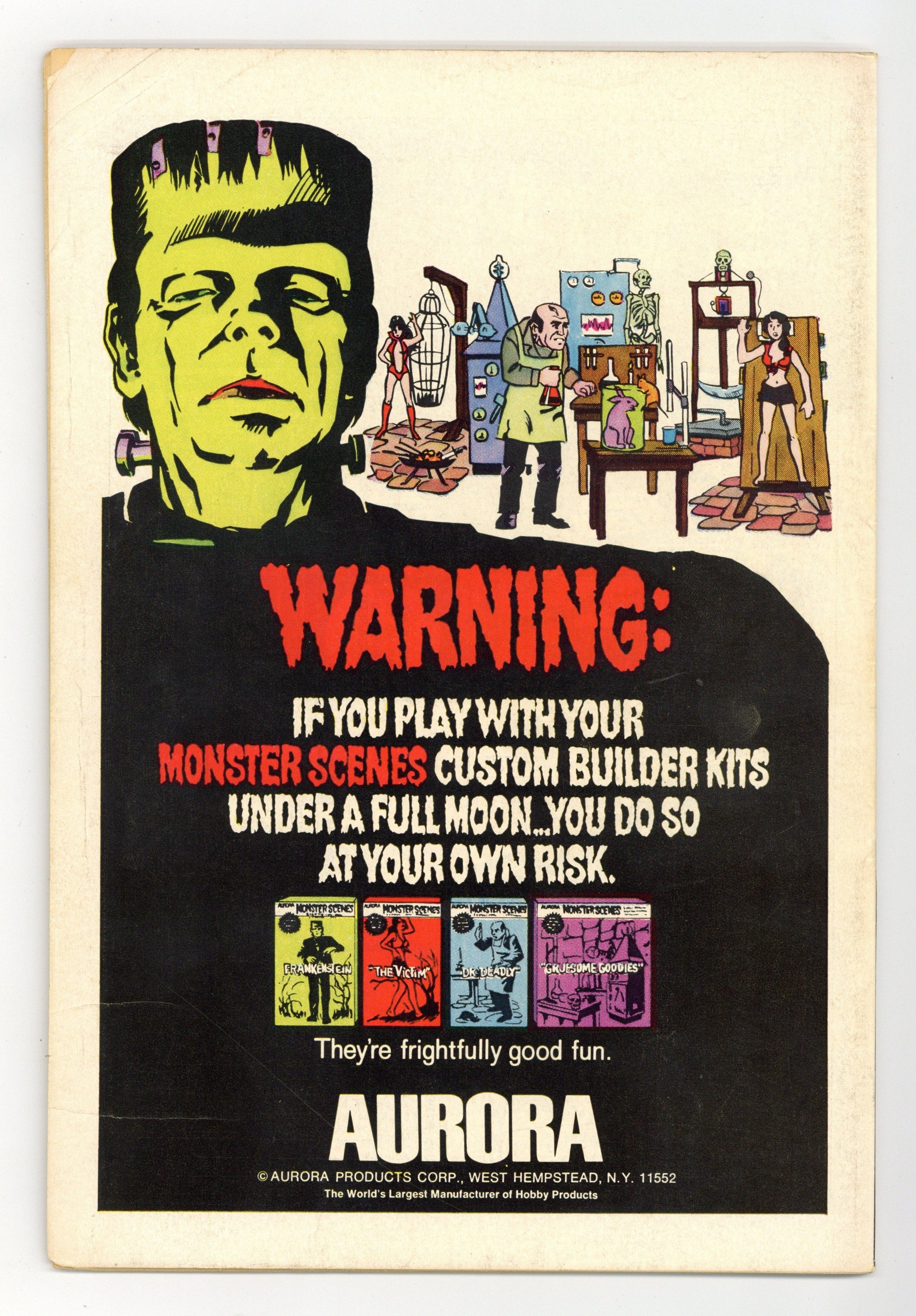 Cover art by Bernie Wrightson. "The Man with My Face," art by Jack Sparling; A gambler agrees to switch bodies with a mysterious stranger in exchange for a lucky silver dollar which allows him to never lose a bet. "Hyde--and Go Seek!", script by Len Wein, art by Tony DeZuniga; A henpecked police officer is shocked to find out his best friend was searching for a cure for drug addiction and developed a serum that transformed him into a strangler that choose his victims among girls who reminded him of his wife who left him. "The Day Nobody Died," art by George Roussos; A man is certain no one will die today because he is Death and it's his day off. "Track of the Invisible Beast," art by Alex Toth. Abel's Fables cartoon page by Sergio Aragones. "A Bottle of Incense.. A Whiff of the Past!", script by Gerry Conway, pencils by Alan Weiss, inks by Bernie Wrightson and Alan Weiss; An old woman who lost a man she fancied in an auto accident fifty years ago uses an occult ritual to return him to her, but he returns as a hungry zombie who devours her. 52 Pages, Full Color. Cover price $0.25.
