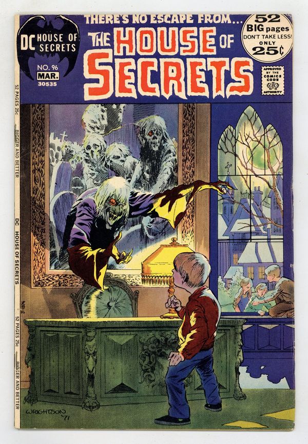 Cover art by Bernie Wrightson. "World for a Witch," script by Jack Oleck, art by Bill Draut; A witch runs an orphanage who uses a spell to escape into a wall painting of a beautiful countryside but is observed by the children spying on her; She beats one of the girls to death and attempts to flee justice, unaware that one of the other kids has swapped the painting in her office with a painting of Hell. "The Great Dimensional Brain Swap," art by Alex Toth. "Be It Ever So Humble," script by Len Wein, pencils by Dick Dillin, inks by Jack Abel; A couple builds a house on a plot of land where a plantation used to stand but burned down and the owner's ghost stills haunts the land; After the couple's house is built the ghost is dissatisfied and starts adding on rooms; This annoys the husband because the couple think the additions are tacky, which annoys the ghost, but he doesn't want to leave because all their money is tied up in the house. Abel's Fables cartoon page by Sergio Aragones. "The Monster," script by Jack Oleck, art by Wally Wood; A boy born as a freak invents a consistent psychosis where he sees himself as normal and all the normal people as freaks; He attempts to elude sedition by the medical staff and escape the hospital but eventually he falls asleep and is captured. "The Indestructible Man," art by Bill Ely; A man is safe from all harm and can commit any crime as long as he wears a special glove covering his vulnerable spot; But when he dips his hand in what he thinks is ink, but is really poison, he is struck dead. 52 Pages, Full Color. Cover price $0.25.