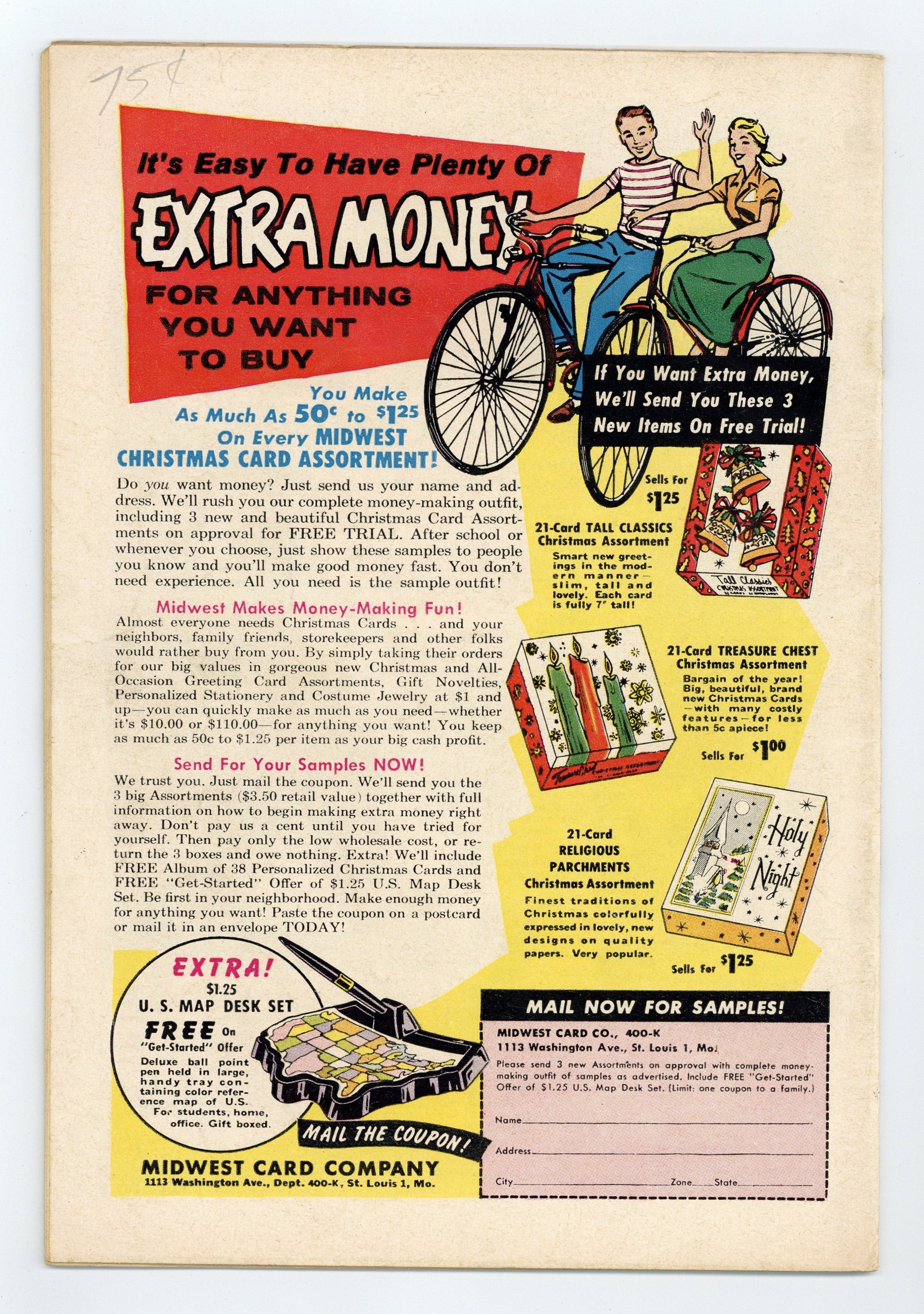$16.50Cover pencils by Curt Swan, inks by Stan Kaye. The Invisible Life of Jimmy Olsen!, script by Otto Binder; a meteor Superman gives to Jimmy makes him invisible. Jimmy Olsen, Supergirl's Pal!, script by Otto Binder; Jimmy determines that Colonel Colby's Show of Wonders is a fraud. Jimmy Olsen, Juvenile Delinquent!, script by Robert Bernstein. Pencils by Curt Swan, inks by John Forte. 36 Pages, Full Color. Cover price $0.10.