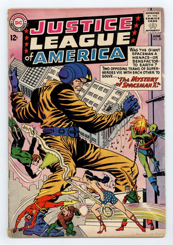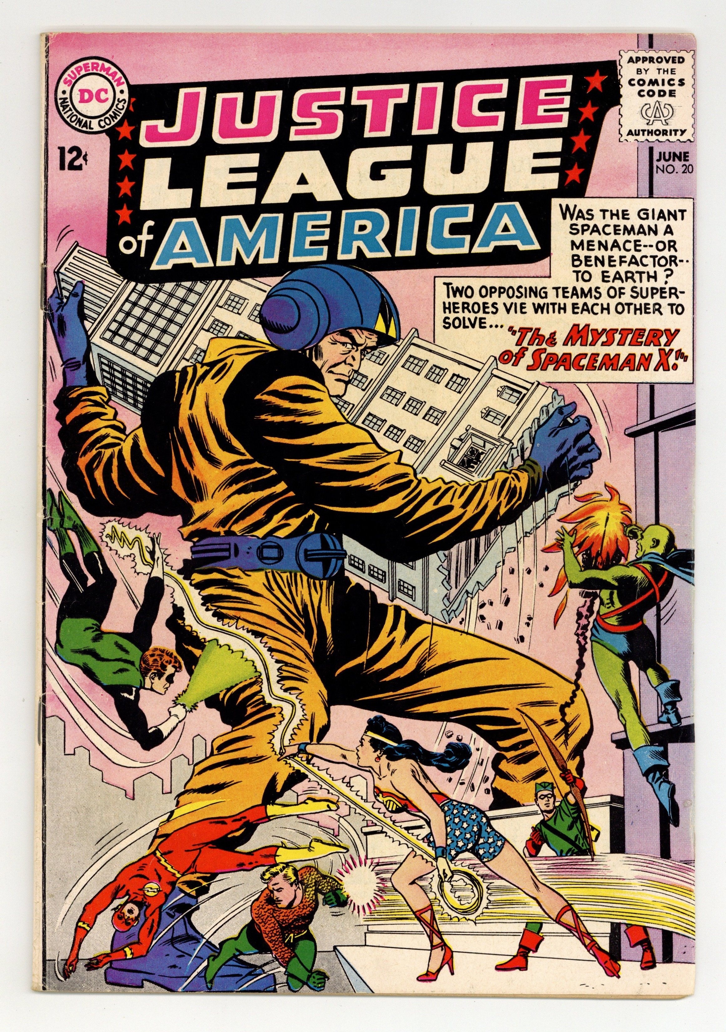 $42.00Cover pencils by Mike Sekowsky, inks by Murphy Anderson. The Mystery of Spaceman X!, script by Gardner Fox, pencils by Mike Sekowsky, inks by Bernard Sachs; An alien uses a giant spaceman to absorb disaster-energy to make himself invulnerable, but Superman separates the alien from his power source. 36 pgs. $0.12. Cover price $0.12.