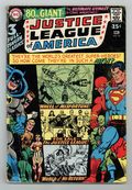 $21.00Cover pencils by Carmine Infantino, inks by Sid Greene. Reprints. The World of No Return!, script by Gardner Fox, pencils by Mike Sekowsky, inks by Bernard Sachs; The Flash must beat Despero in a strange chess-like game to save the other members of the Justice League and the people of Despero's home dimension, Kalanor. The Wheel of Misfortune!, script by Gardner Fox, pencils by Mike Sekowsky, inks by Bernard Sachs. For Sale--the Justice League!, script by Gardner Fox, pencils by Mike Sekowsky, inks by Bernard Sachs. Full page inside back cover ad for "The Best of DC on TV!" featuring the 1967 Superman-Aquaman Hour and the Batman live action show appearing Thursdays on ABC at 7:30 PM. 84 pgs. $0.25. Cover price $0.25.