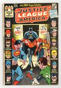 $23.00Cover art by Neal Adams. Earth-- The Monster-Maker!, script by Mike Friedrich, pencils by Dick Dillin, inks by Joe Giella; Three aliens are out on a joyride alongside their symbiotic pets when they lose control of their ship, resulting in one of the aliens being separated from his pet as they travel through the dimensional barrier separating Earths 1 and 2; As the JSA face off vs. the Alien A-Rym, he defeats them, as a result of the adult Robin charging in headstrong. Meanwhile, on Earth-1, as Batman leaves the JLA for another case he's working on, young college-aged Robin faces off alongside the team vs. Teppy, A-Rym's symbiotic pet, with the same actions and consequences; This results in Robin's uniform being torn up. The Day the World Melted featuring Knights of the Galaxy, script by Robert Kanigher, pencils by Carmine Infantino, inks by Joe Giella. The Hour Hourman Died! starring Hourman, script by Gardner Fox, pencils by Dick Dillin, inks by Sid Greene. Letter from editorial director Carmine Infantino on the inflation in the USA and National Publications raising the price of its comics. Harlan Ellison controversy in this issue.52 pgs. $0.25. Cover price $0.25.