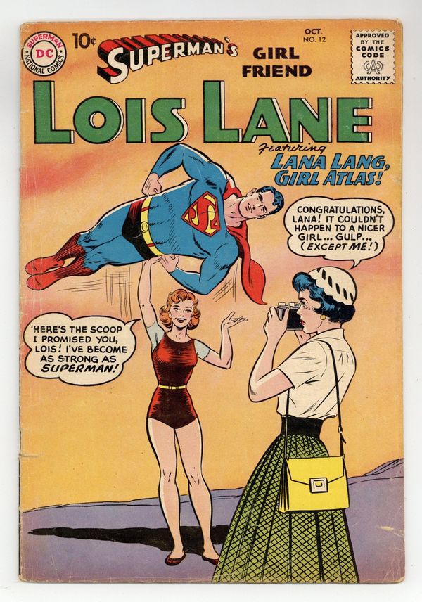 Cover pencils by Curt Swan, inks by Stan Kaye. The Mermaid from Metropolis!, script by Robert Bernstein, art by Kurt Schaffenberger; Lois Lane is rescued by Aquaman, but her injuries require emergency surgery that turns her into a mermaid. The Girl Atlas!, script by Robert Bernstein, art by Kurt Schaffenberger; Professor Morris' serum gives Lana Lang super-strength. Lois Lane Loves Clark Kent!, pencils by Al Plastino; After Lois decides Clark is Superman she tries to trick him into marrying her. 36 Pages, Full Color. Cover price $0.10.